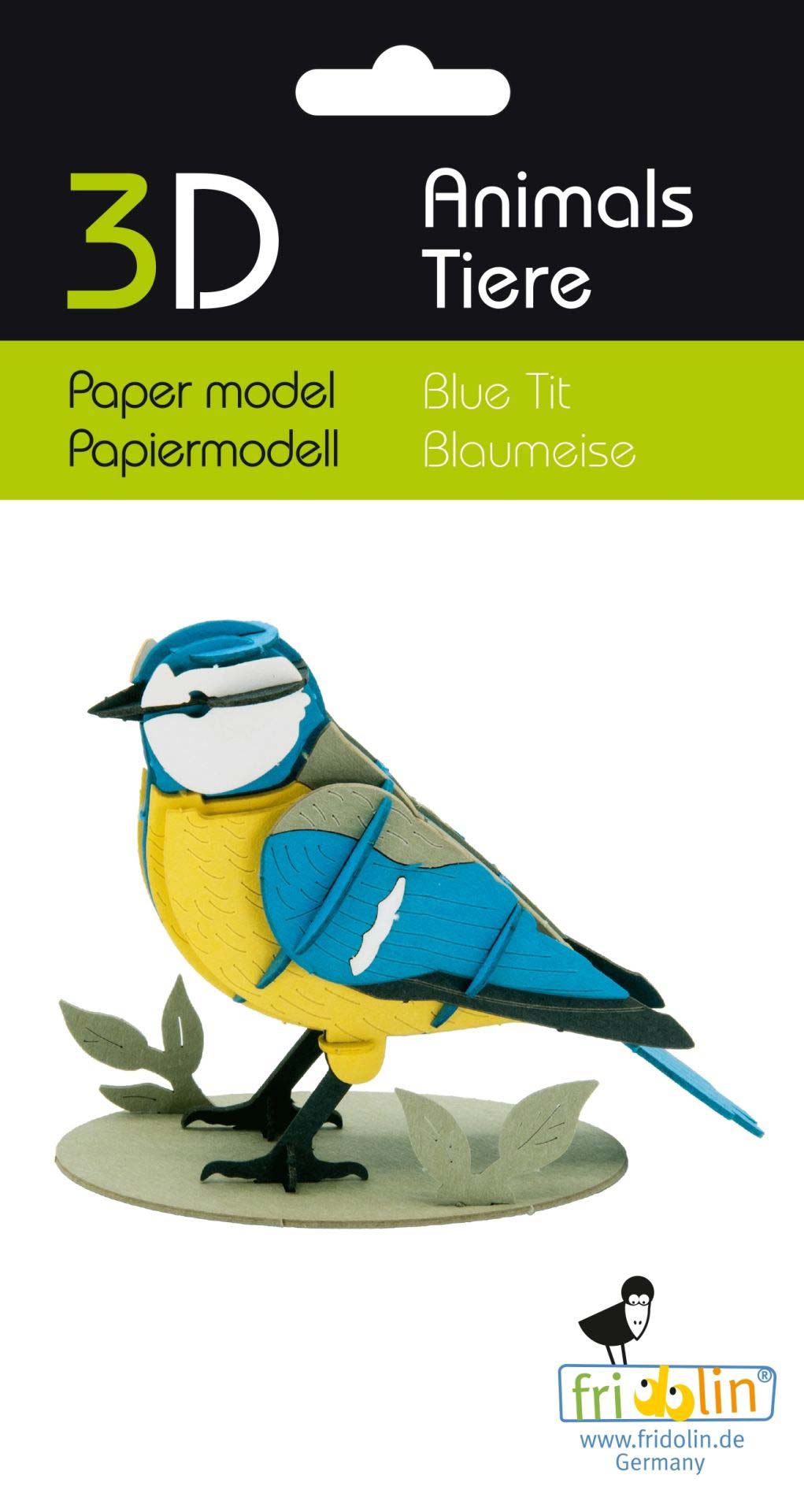 Das 3D Papiermodell "Blaumeise" ist montiert ca. 9,5 x 7 x 5 cm groß. Der Bausatz besteht aus präzise gelasertem Spezialkarton und wird zusammengesteckt.