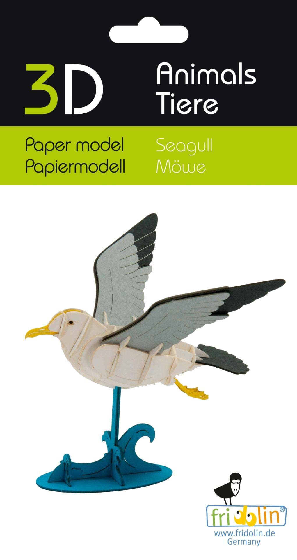 Das 3D Papiermodell "Möwe" ist montiert ca. 11 x11 x 13 cm groß. Der Bausatz besteht aus präzise gelasertem Spezialkarton und wird zusammengesteckt.