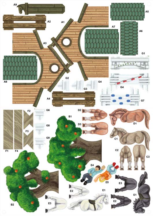 Das 3D Bastelset "Pferderanch" als zusammenbaubares Modell. Das Set besteht aus Bastelbögen zum Herausbrechen der Teile und einer ausführlichen Anleitung. Das Material ist bedruckte Holzpappe.