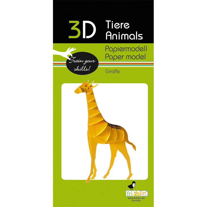 Das 3D Papiermodell "Giraffe" ist montiert ca. 10 x 14 x 4 cm groß. Der Bausatz besteht aus präzise gelasertem Spezialkarton und wird zusammengesteckt.
