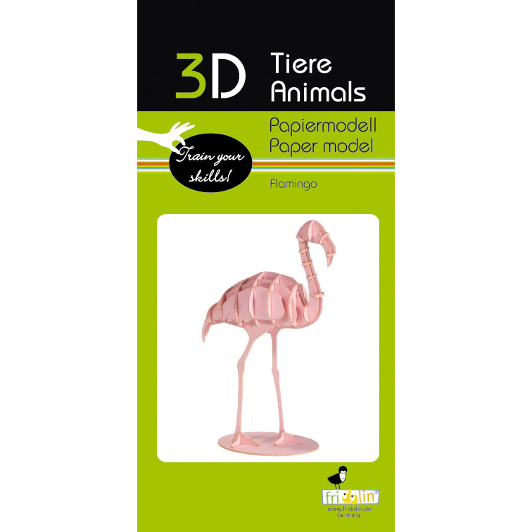 Das 3D Papiermodell "Flamingo" ist montiert ca. 8,5 x 12,5 x 4 cm groß. Der Bausatz besteht aus präzise gelasertem Spezialkarton und wird zusammengesteckt.