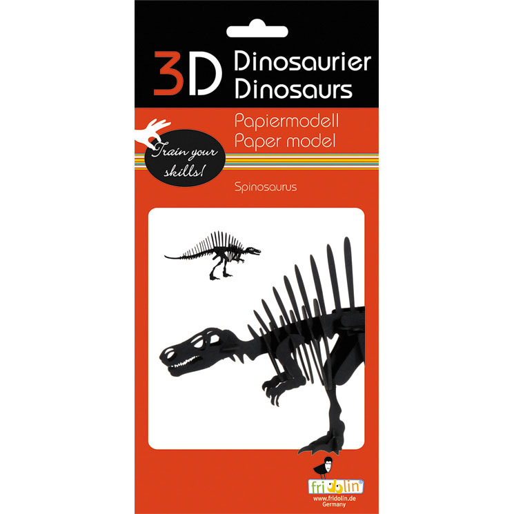 Das 3D Papiermodell "Spinosaurus" ist montiert ca. 23 x 11,5 x 5,5 cm groß. Der Bausatz besteht aus präzise gelasertem Spezialkarton und wird zusammengesteckt.