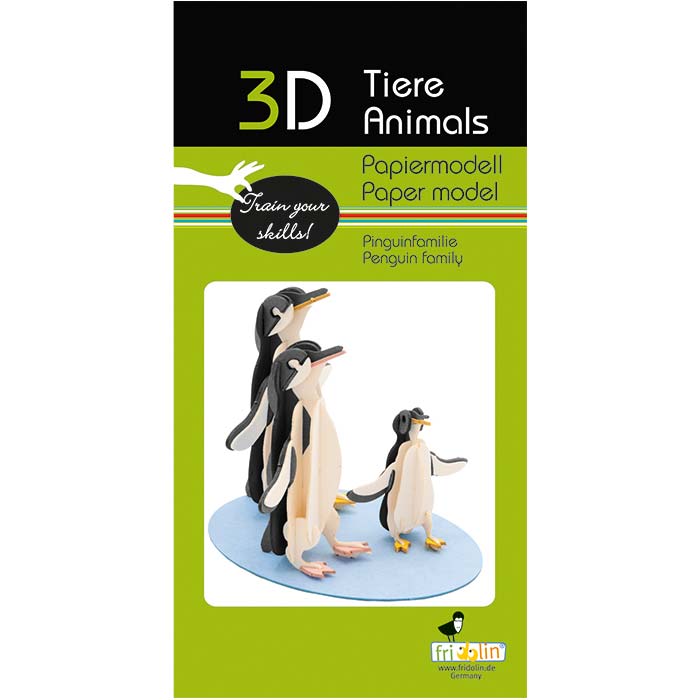 Das 3D Papiermodell "Pinguinfamilie" ist montiert ca. 10 x 8 x 9 cm groß. Der Bausatz besteht aus präzise gelasertem Spezialkarton und wird zusammengesteckt.