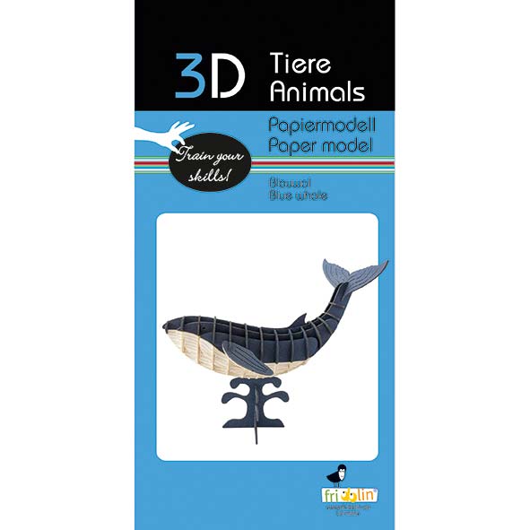 Das 3D Papiermodell "Blauwal" ist montiert ca. 11 x 10 x 5,5 cm groß. Der Bausatz besteht aus präzise gelasertem Spezialkarton und wird zusammengesteckt.