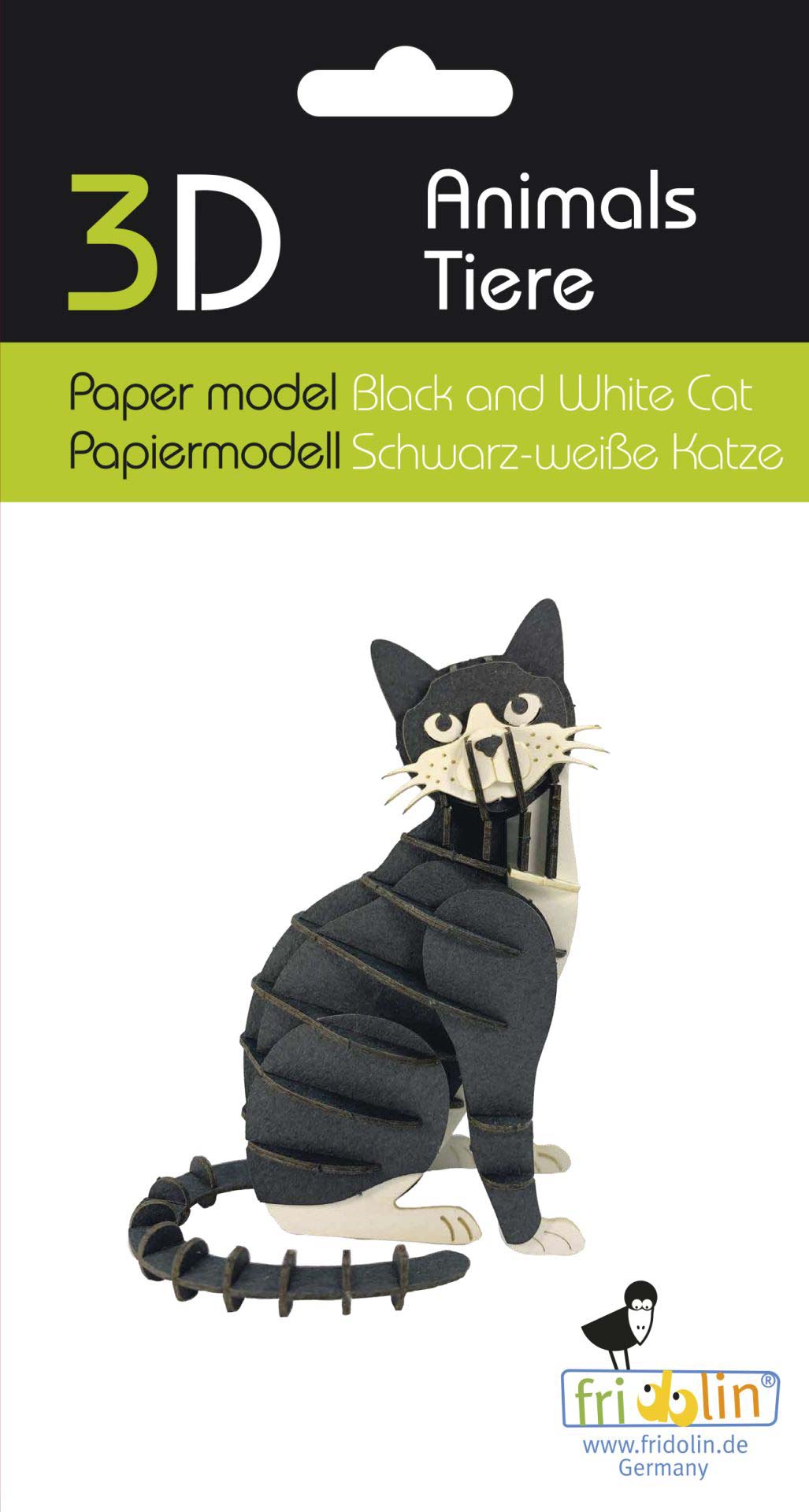 3D Papiermodell Katze, schwarz/weiß