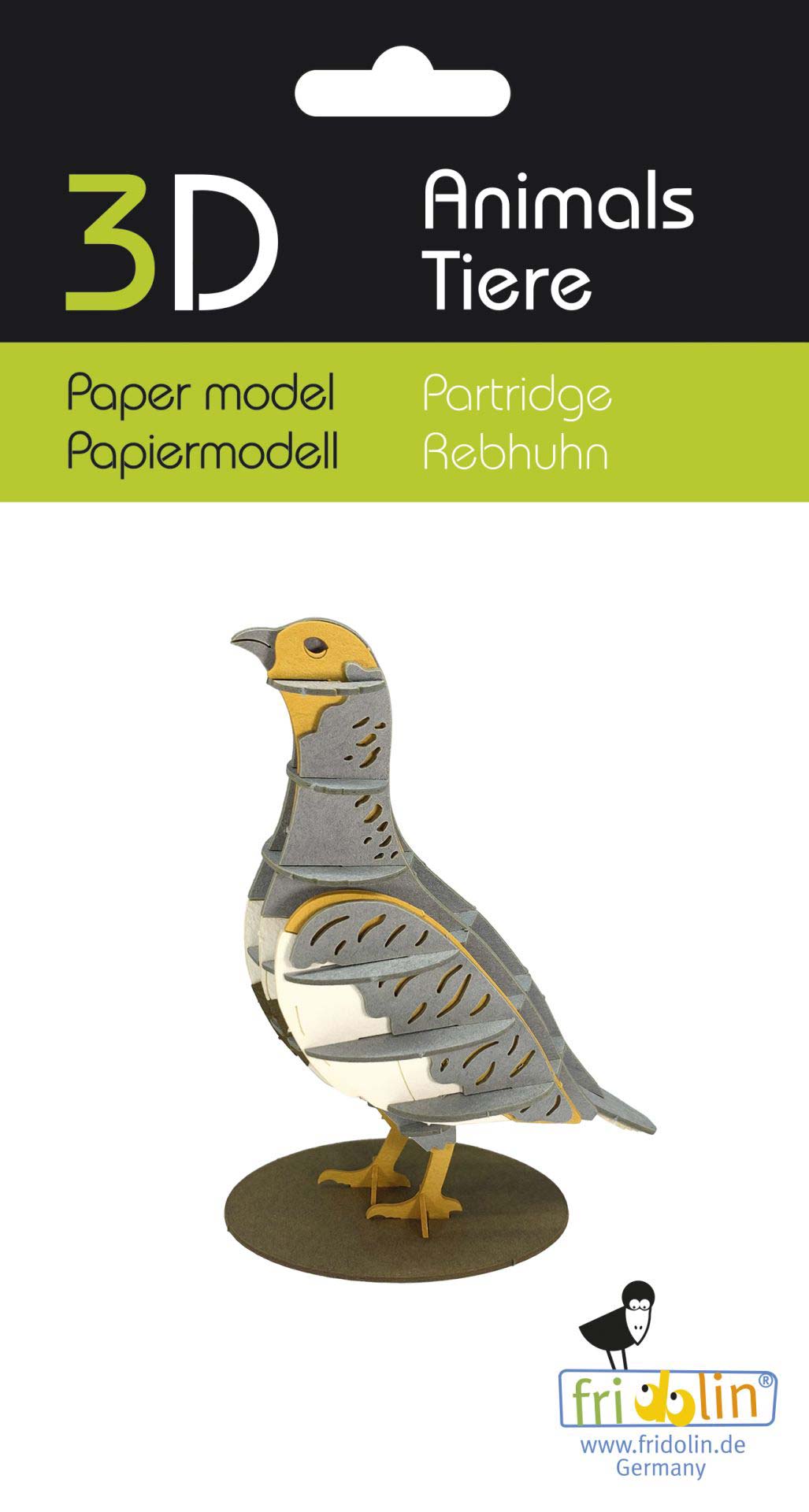 Das 3D Papiermodell "Rebhuhn" ist montiert ca. 8 x 10 x 4 cm groß. Der Bausatz besteht aus präzise gelasertem Spezialkarton und wird zusammengesteckt.