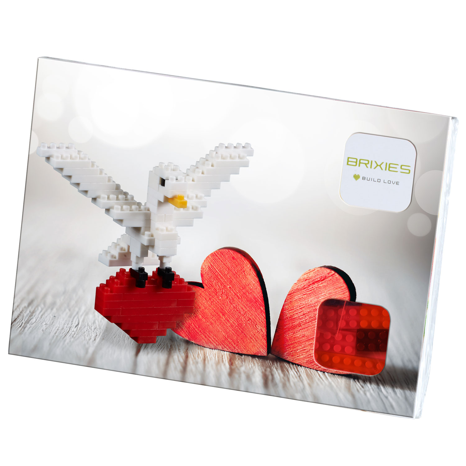 Die Brixies Postkarte "Turteltaube" enthält einen Bausatz mit 70 bunten, kleinen Brixies Bausteinen. Verschicken Sie einen kleinen Gruß mit ein wenig Bauspaß als Überraschung.