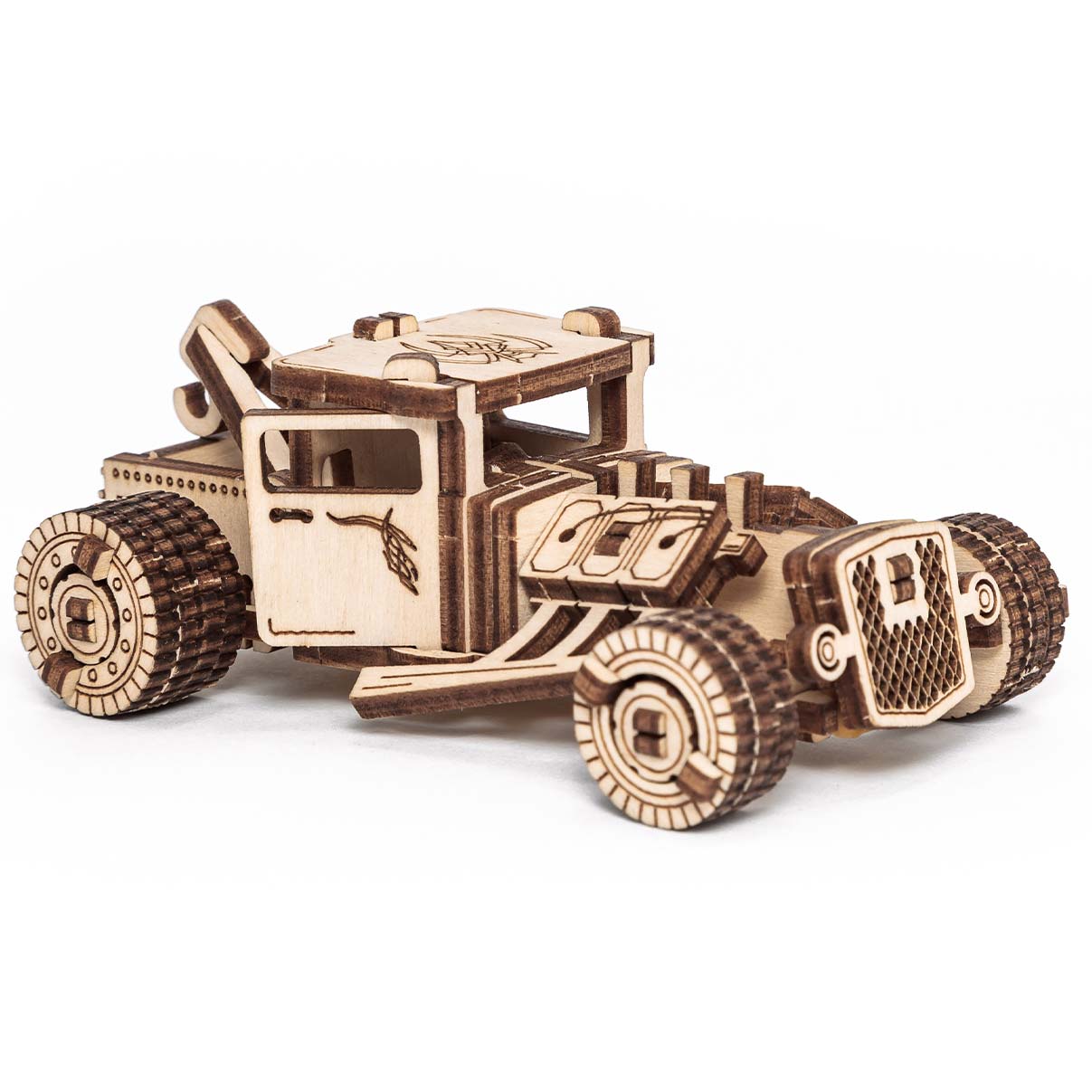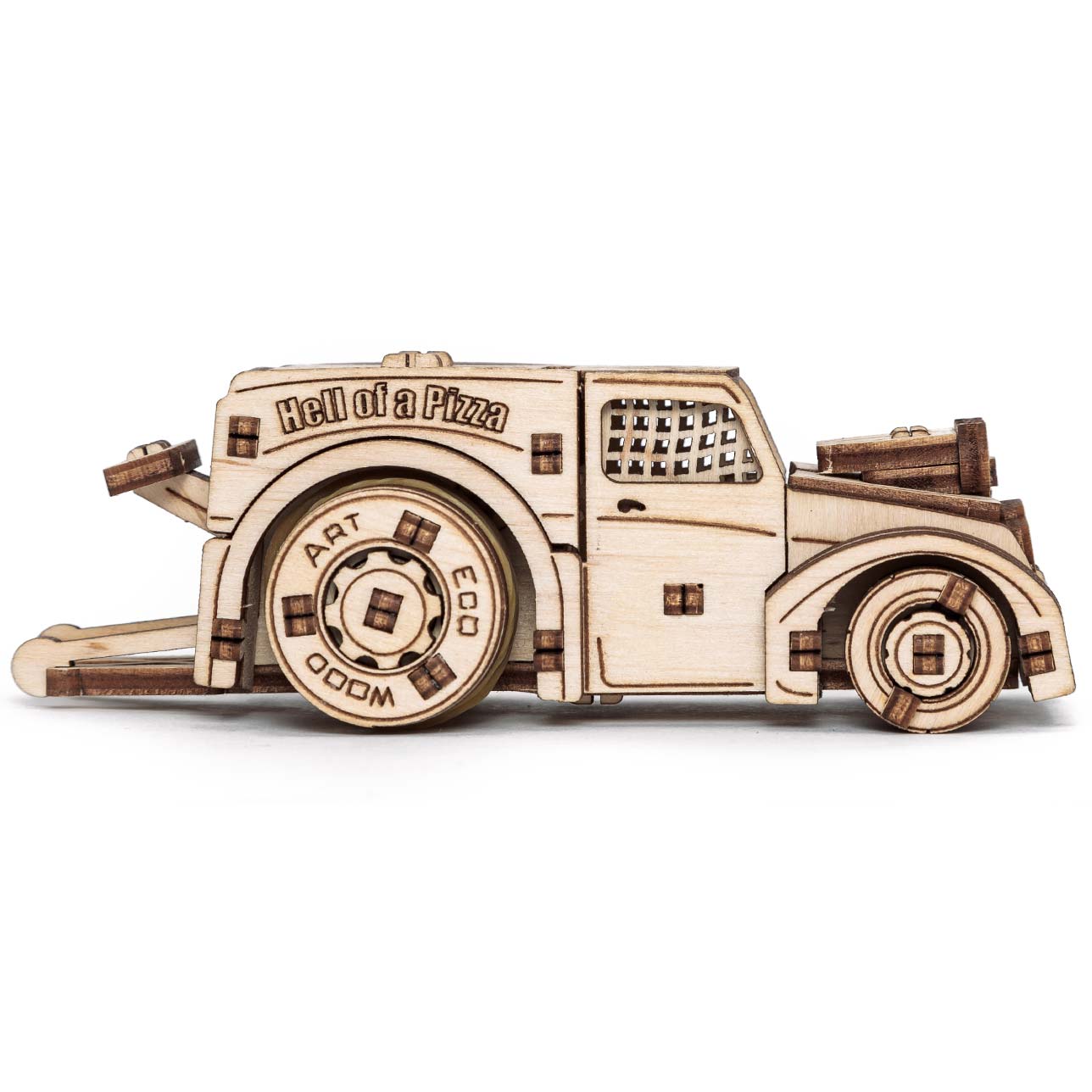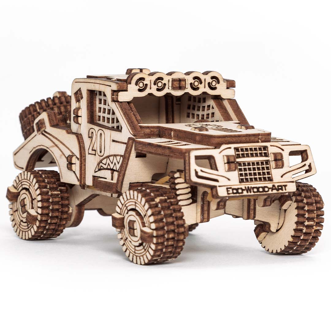Eco Wood Art ist eine junge Firma aus Weißrussland, die kreative und ideenreiche, mechanische Holzmodellbausätze entwickelt und produziert. Die Bausätze werden im Lasercut-Verfahren aus nachwachsenden Hölzern hergestellt. Die Holzplatten werden aus Sperrholz Birke hergestellt. Aus den Platten werden die Einzelteile herausgetrennt und dann zusammengesetzt. Die meisten Modelle werden dabei ganz ohne die Verwendung von Klebe zusammengebaut, für einige ist Klebe notwendig. Die mechanischen Funktionen werden mit Gummibändern (z.B. für Aufziehmotoren) und vor allem Zahnrädern realisiert und lassen jedes Modell zum Leben erwecken.