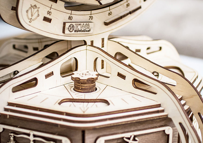 Eco Wood Art ist eine junge Firma aus Weißrussland, die kreative und ideenreiche, mechanische Holzmodellbausätze entwickelt und produziert. Die Bausätze werden im Lasercut-Verfahren aus nachwachsenden Hölzern hergestellt. Die Holzplatten werden aus Sperrholz Birke hergestellt. Aus den Platten werden die Einzelteile herausgetrennt und dann zusammengesetzt. Die meisten Modelle werden dabei ganz ohne die Verwendung von Klebe zusammengebaut, für einige ist Klebe notwendig. Die mechanischen Funktionen werden mit Gummibändern (z.B. für Aufziehmotoren) und vor allem Zahnrädern realisiert und lassen jedes Modell zum Leben erwecken.