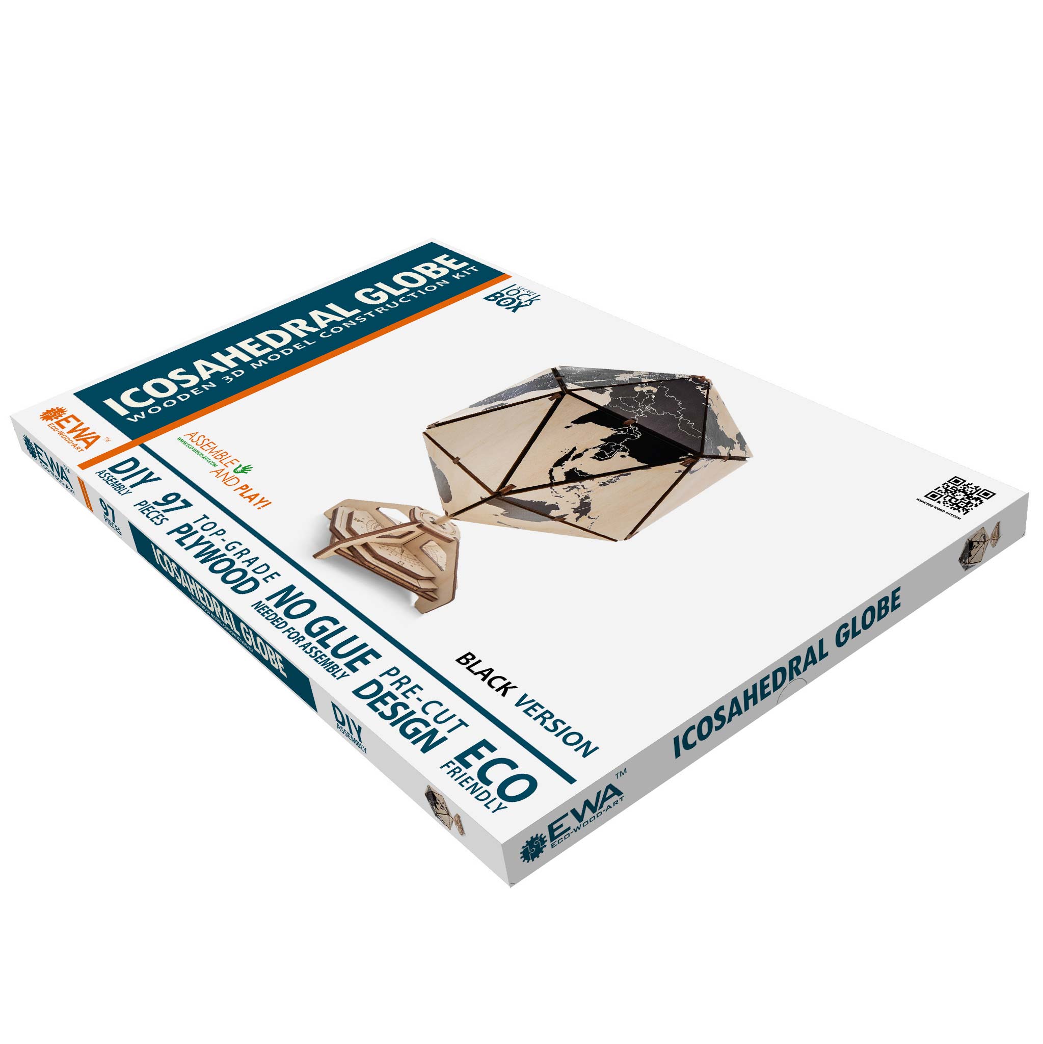 Der Icosahedral Globe in Schwarz ist ein Bausatz mit 97 Teilen von Eco Wood Art. Der aus 20 Seiten bestehende Globus ist mit einem Geheimfach im Inneren des Balls ausgestattet, der einen versteckten Schließmechanismus hat. Den Icosahedral Globus haben wir in drei verschiedenen Farbvarianten.