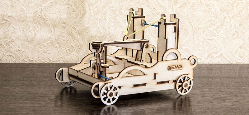 Eco Wood Art ist eine junge Firma aus Weißrussland, die kreative und ideenreiche, mechanische Holzmodellbausätze entwickelt und produziert. Die Bausätze werden im Lasercut-Verfahren aus nachwachsenden Hölzern hergestellt. Die Holzplatten werden aus Sperrholz Birke hergestellt. Aus den Platten werden die Einzelteile herausgetrennt und dann zusammengesetzt. Die meisten Modelle werden dabei ganz ohne die Verwendung von Klebe zusammengebaut, für einige ist Klebe notwendig. Die mechanischen Funktionen werden mit Gummibändern (z.B. für Aufziehmotoren) und vor allem Zahnrädern realisiert und lassen jedes Modell zum Leben erwecken.