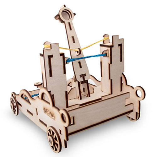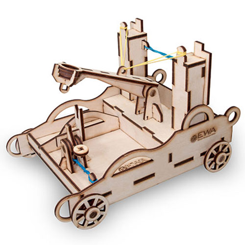 Das Modell Ballista von Eco Wood Art bildet eine alte Waffe der Griechen und Römer nach. Die Ballista ähnelt einem Katapult und kann dazu benutzt werden, kleine Kügelchen zu verschießen. Dazu wird beim Modell ein Gummiband gespannt, dass über einen Hebel gelöst wird.