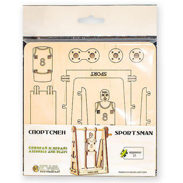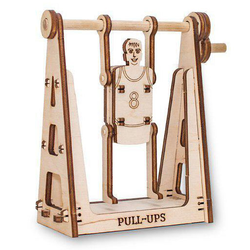 Der Spinning Sportsman von Eco Wood Art ist ein kleiner Bausatz für Einsteiger. Das Modell besteht aus 22 Teilen und läßt einen Sportler um eine Stange "turnen".