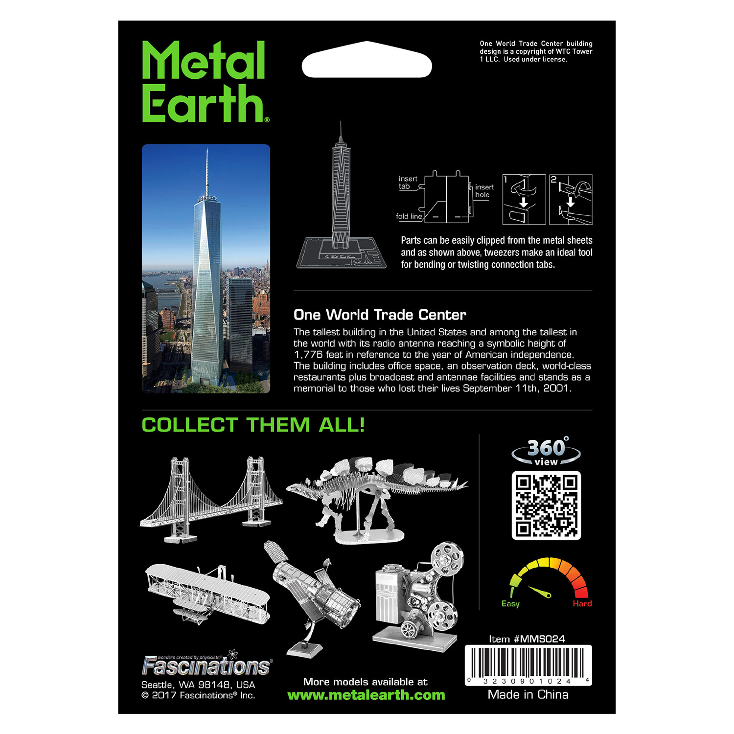 Das Modell One World Trade Center von Metal Earth besteht aus 1 Metallbogen (11 x 11 cm) und ist 9,9 x 3,6 x 3,6 cm groß.