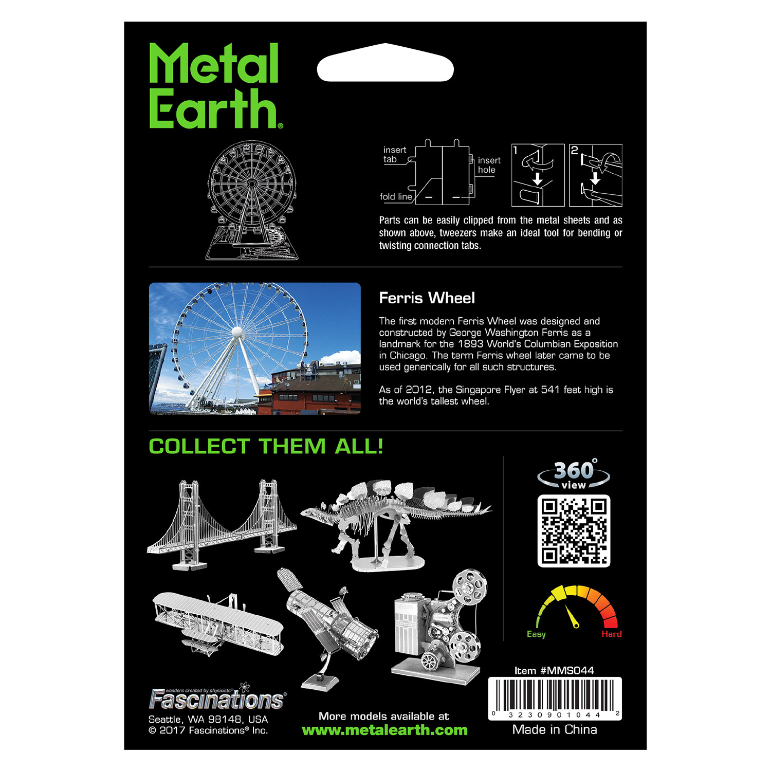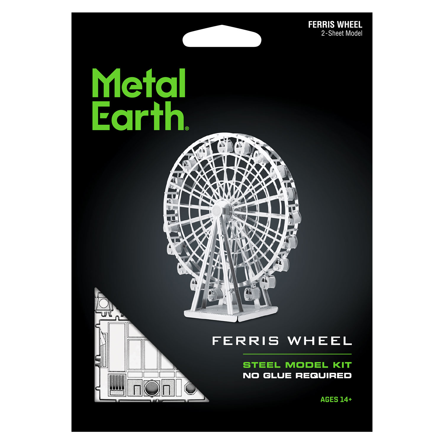 Das Modell Ferris Wheel von Metal Earth aus der Silver Edition besteht aus 2 Metallbögen (11 x 11 cm) und ist 7,4 x 9 x 3,3 cm groß.