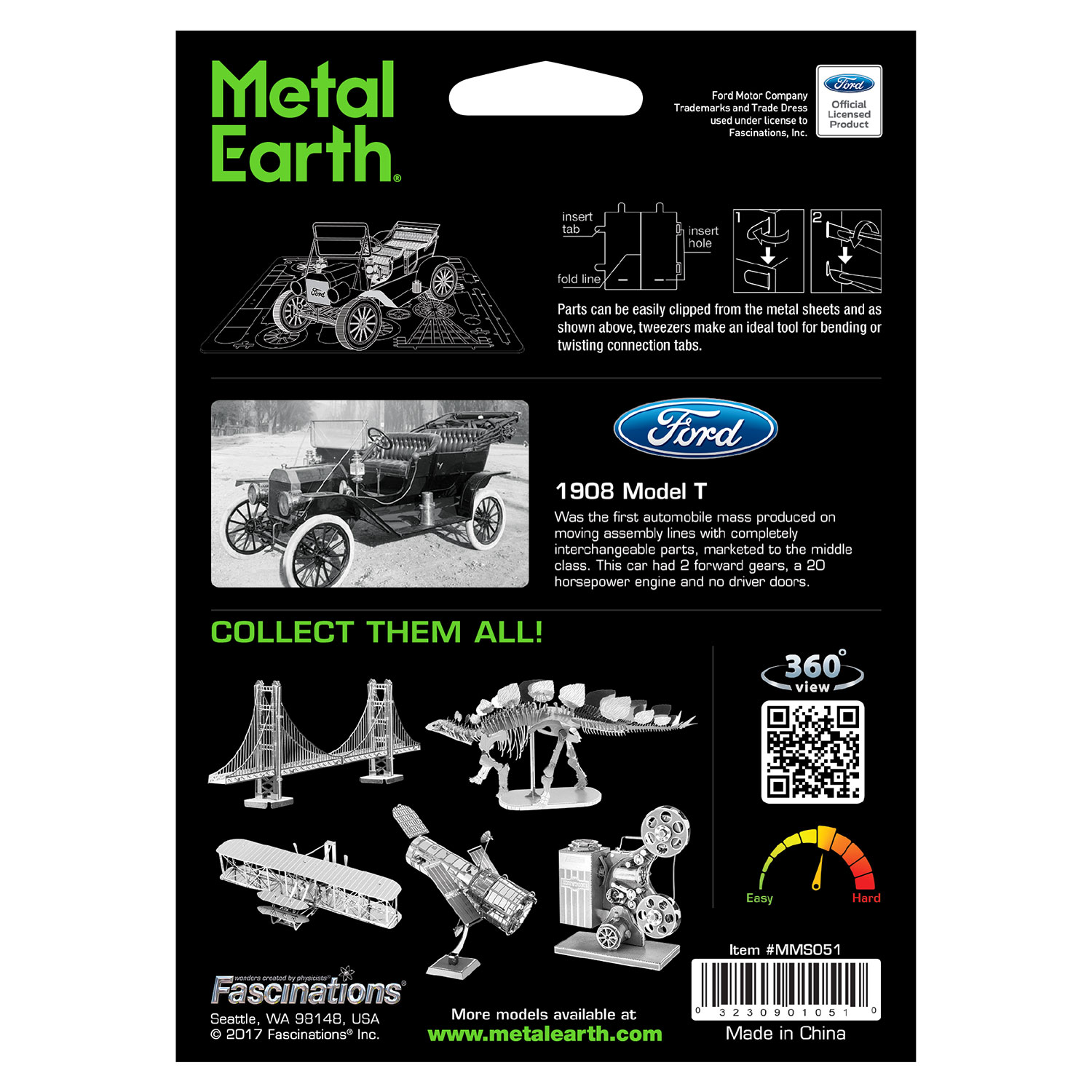 Vom Stahlblech zum verblüffend aussehenden 3D-Modell. Die Metall-Bausätze von Metal Earth bestehen aus Metallkarten im Format 11 x 11 cm und einer leicht verständlichen Bauanleitung. Die Bauteile werden einfach aus den Metallplatten herausgedrückt und zusammengesetzt. Klebstoff kommt dabei nicht zum Einsatz, allerdings erleichtern eine Pinzette und Spitzzange den Zusammenbau (auch bei uns erhältlich unter Zubehör). Das Ergebnis der Bausätze sind Modelle mit erstaunlicher Treue zum Detail.