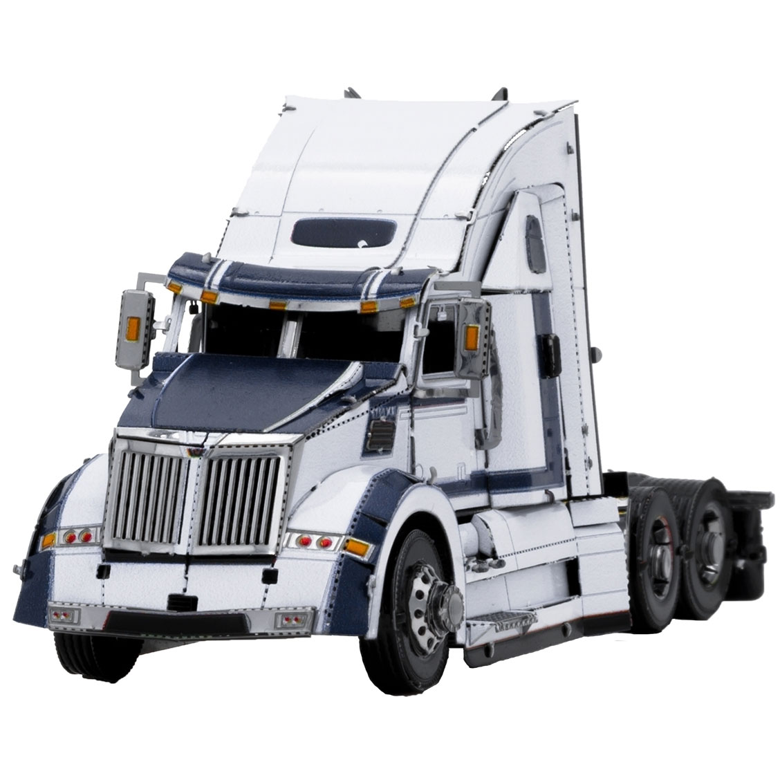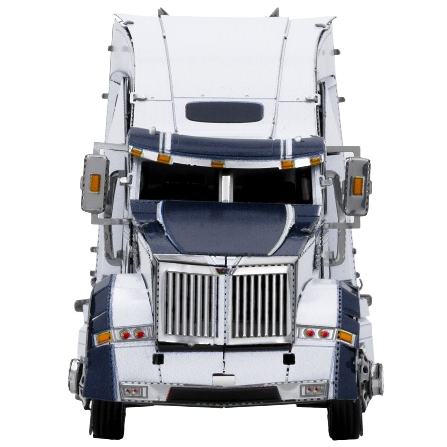 Das Modell Western Star 5700XE Phantom von Metal Earth besteht aus 3 Metallbögen (11 x 11 cm) und ist 10,8 x 4,2 x 5,3 cm groß.