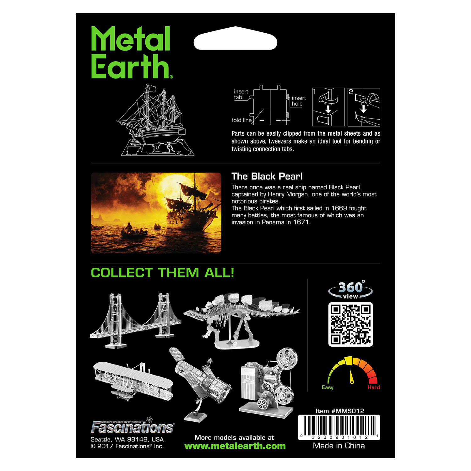 Das Modell Black Pearl von Metal Earth aus der Silver Edition besteht aus 2 Metallbögen (11 x 11 cm) und ist 9,9 x 7,9 x 1,8 cm groß.