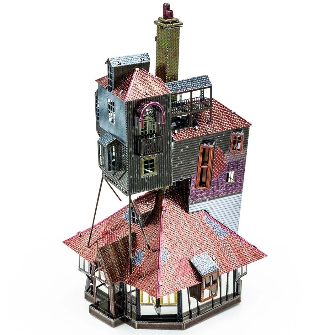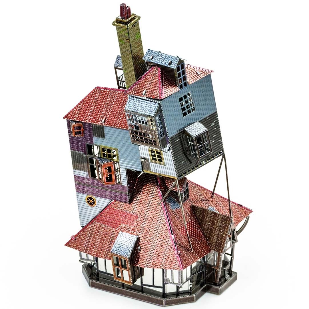 Das Modell Harry Potter The Burrow (colored) von Metal Earth besteht aus 2 Metallbögen (11 x 11 cm) und ist 7,4 x 4,8 x 10 cm groß.