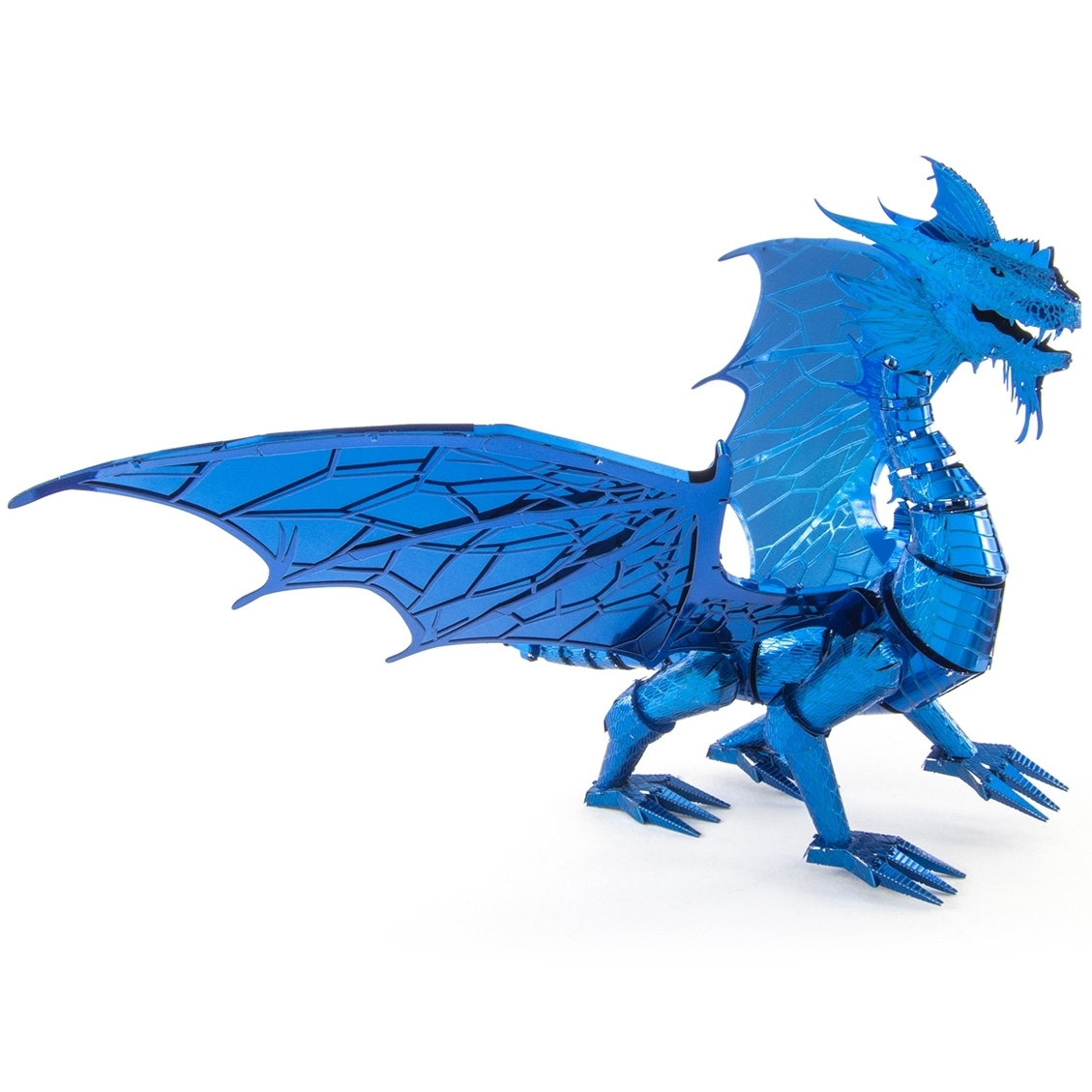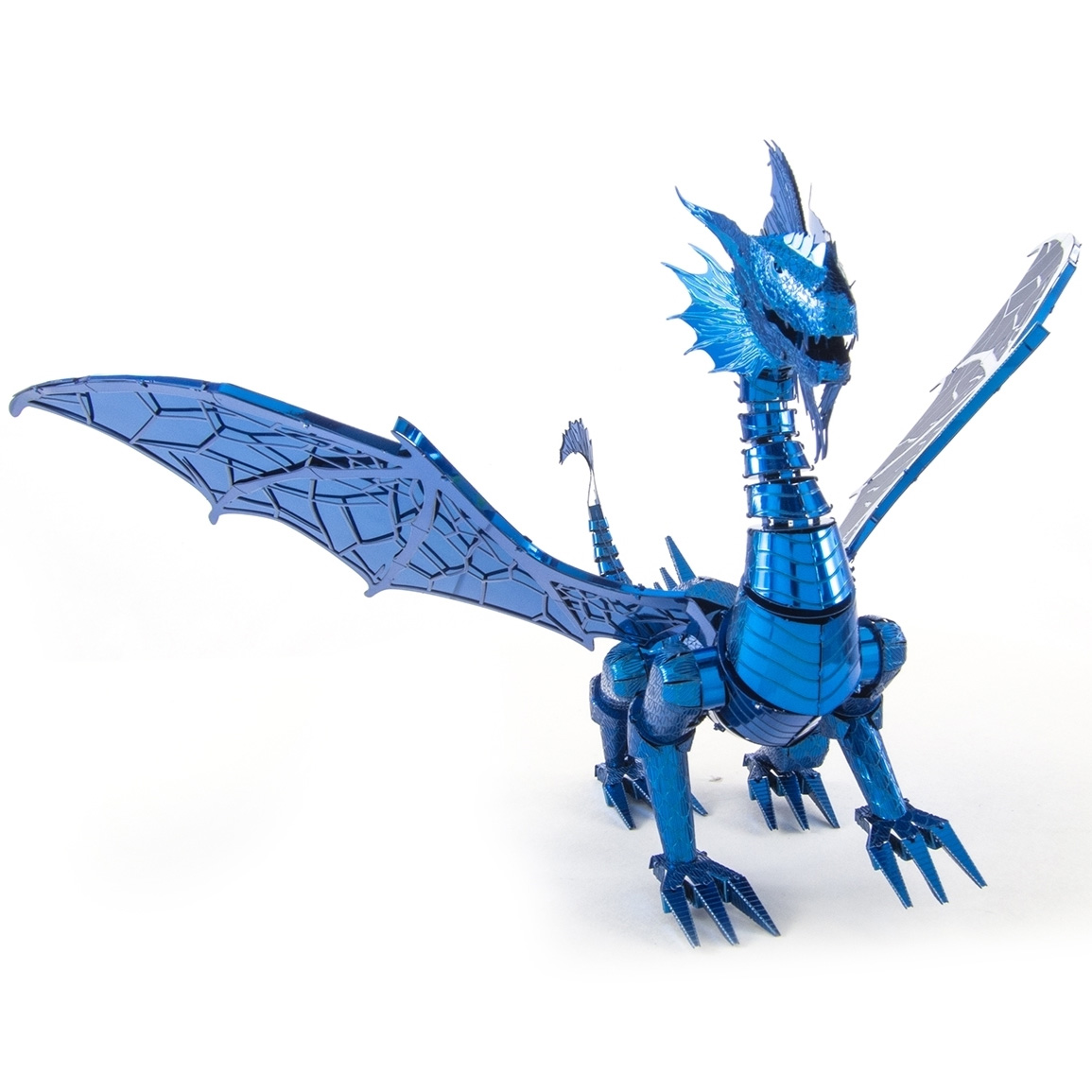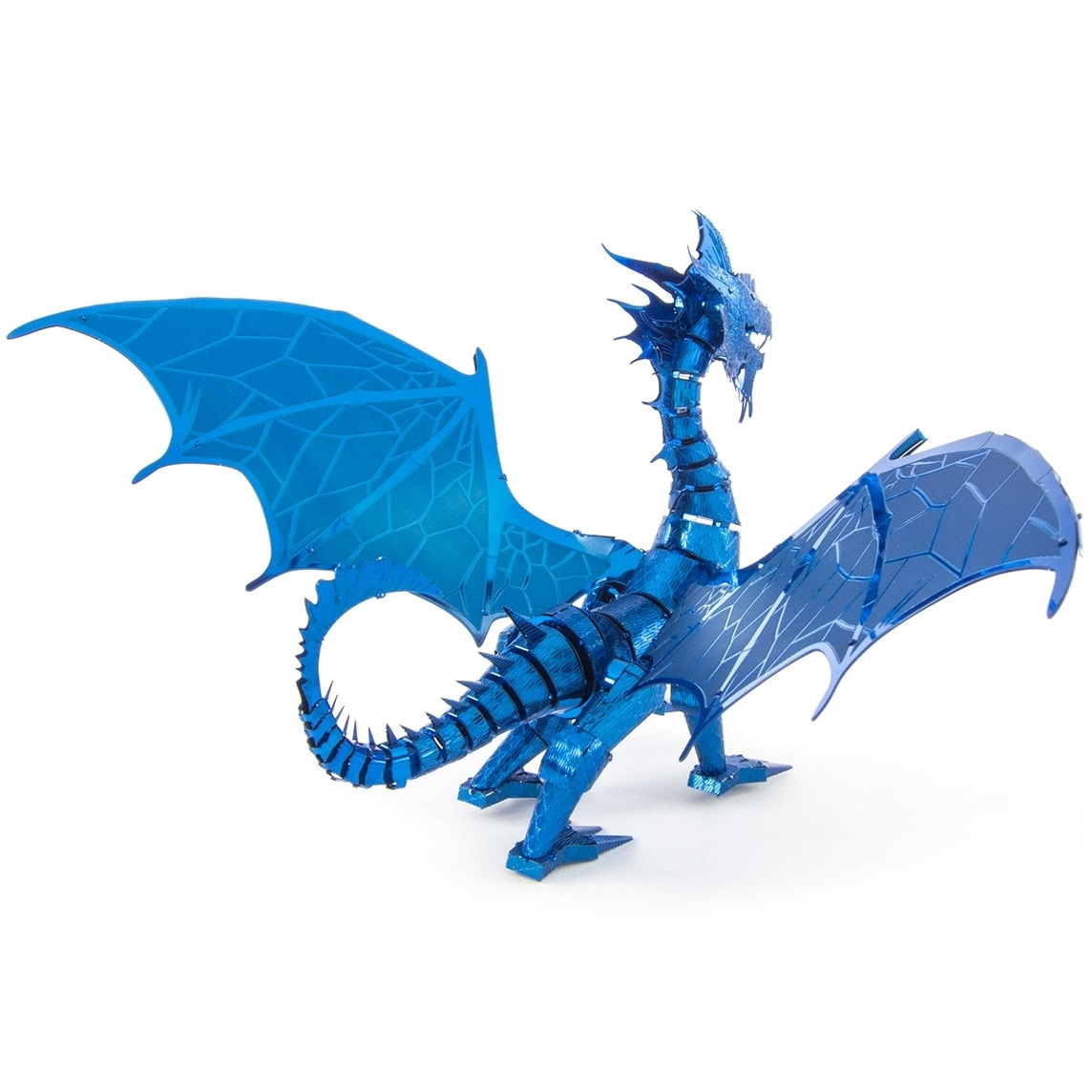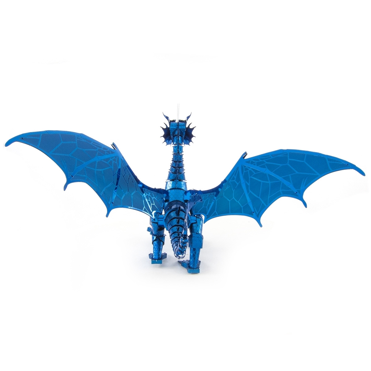 Der Bausatz aus der Premium Series Blue Dragon von Metal Earth besteht aus 3 Metallbögen (10 x 20 cm) und ist 15,3 x 13,4 x 14 cm groß.