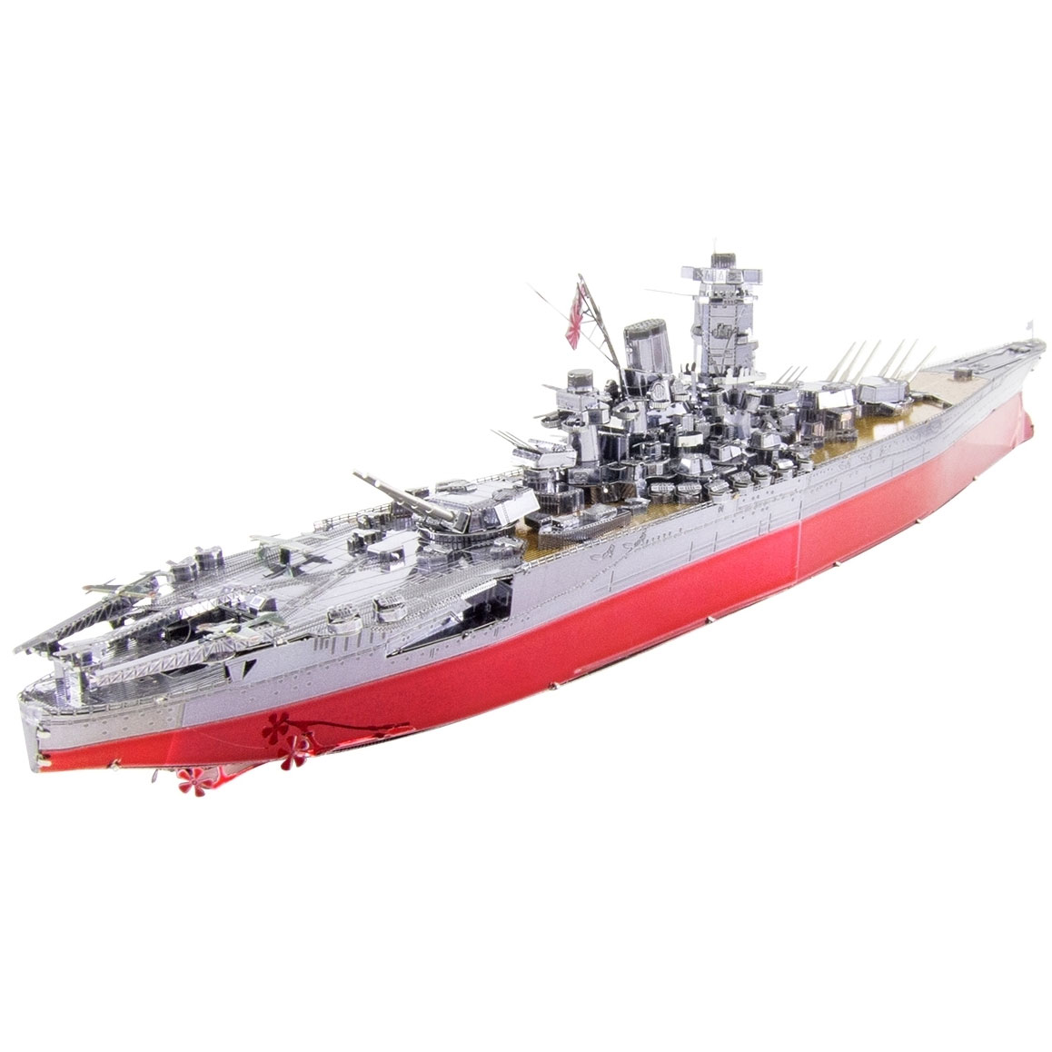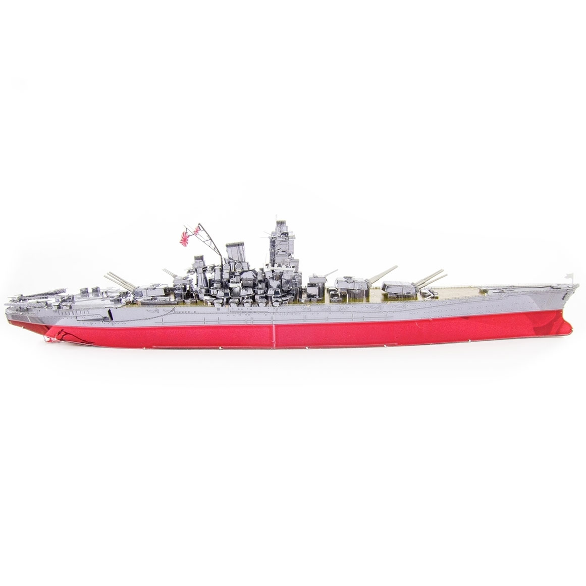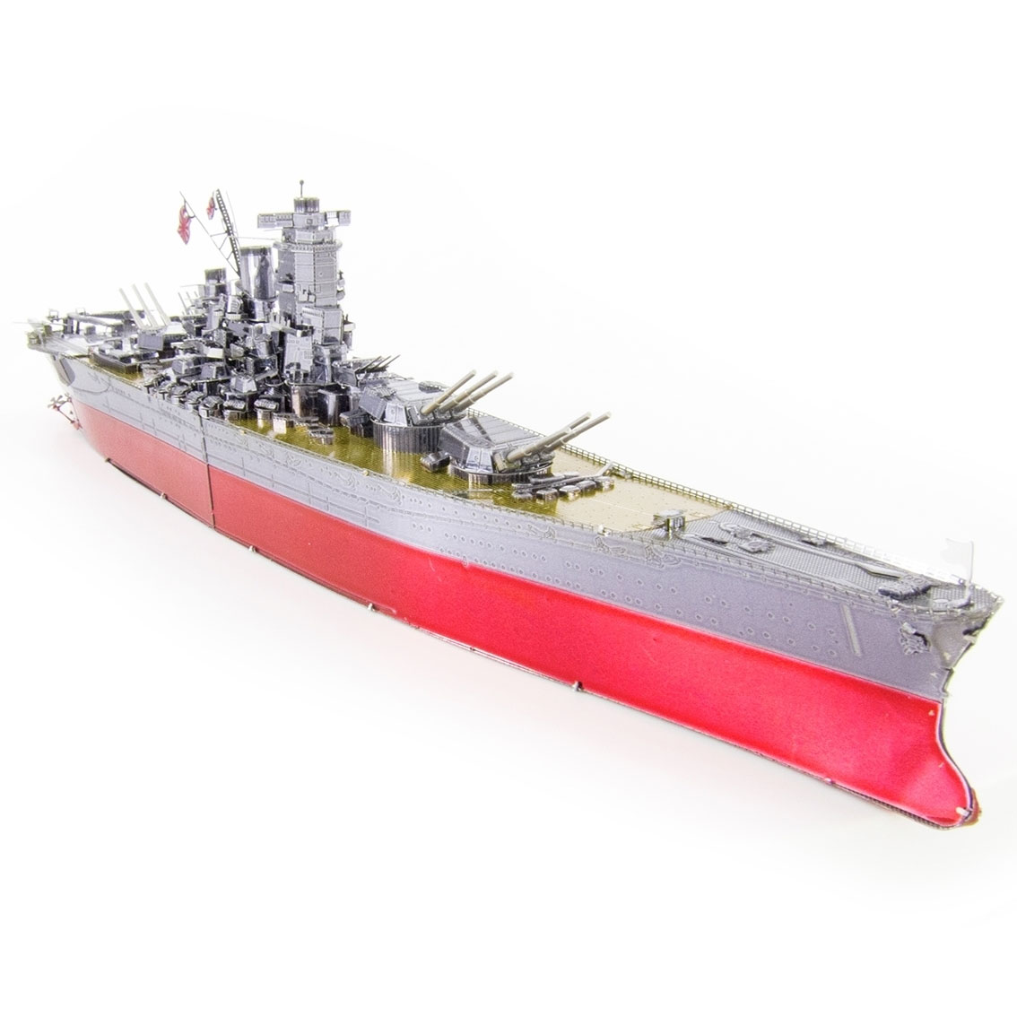 Der Bausatz aus der Premium Series Yamato Battleship von Metal Earth besteht aus 3 Metallbögen (10 x 20 cm) und ist 29,5 x 4,5 x 6,5 cm groß.