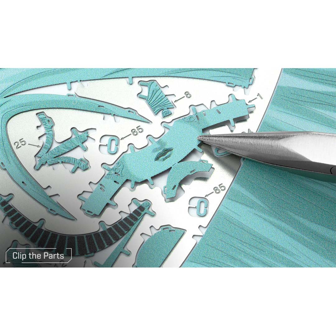 Vom Stahlblech zum verblüffend aussehenden 3D-Modell. Die Iconx Metall-Bausätze haben einen größeren Maßstab und eine höhere Detailierung als die normalen Modelle von Metal Earth und bestehen aus Metallkarten im Format 10 x 20 cm. Sie werden mit einer leicht verständlichen Bauanleitung geliefert. Die Bauteile werden einfach aus den Metallplatten herausgedrückt und zusammengesetzt. Klebstoff kommt dabei nicht zum Einsatz, allerdings erleichtern eine Pinzette und Spitzzange den Zusammenbau (auch bei uns erhältlich unter Zubehör). Das Ergebnis der Bausätze sind Modelle mit erstaunlicher Treue zum Detail.