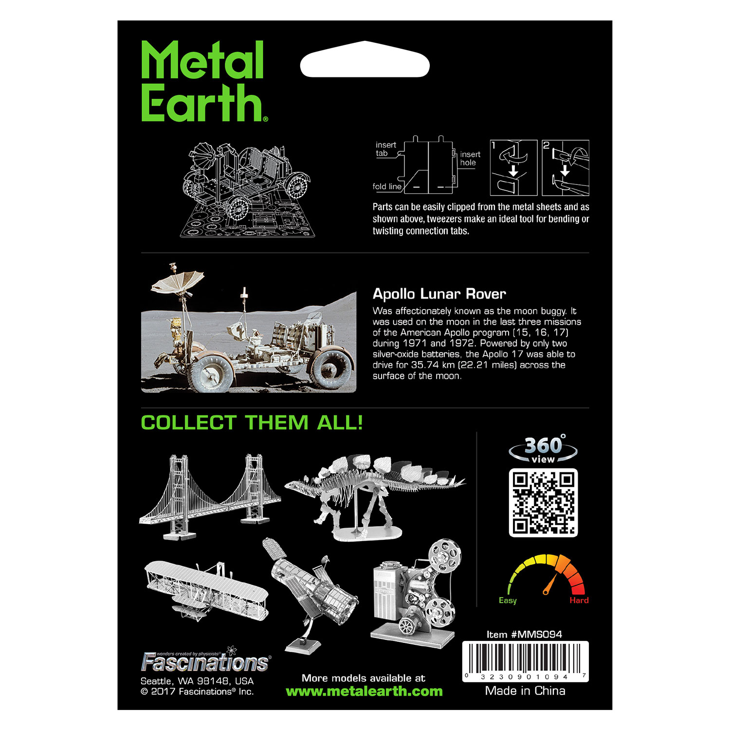 Das Modell Apollo Lunar Rover von Metal Earth besteht aus 2 Metallbögen (11 x 11 cm) und ist 9,0 x 4,5 x 5,8 cm groß.