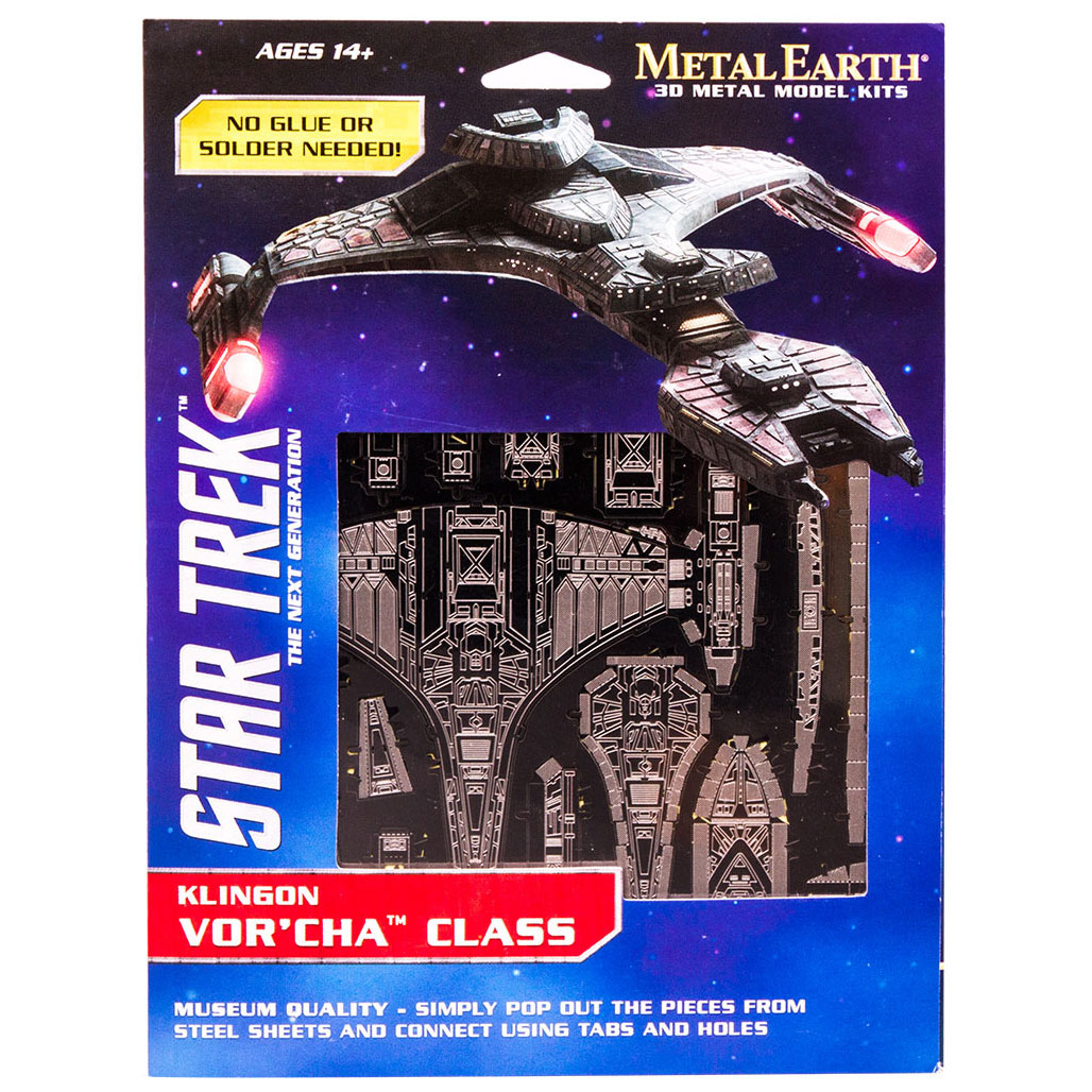 Das Modell Star Trek Klingon VOR'CHA von Metal Earth besteht aus 2 Metallbögen (11 x 11 cm) und ist 12,0 x 8,2 x 4,5 cm groß.