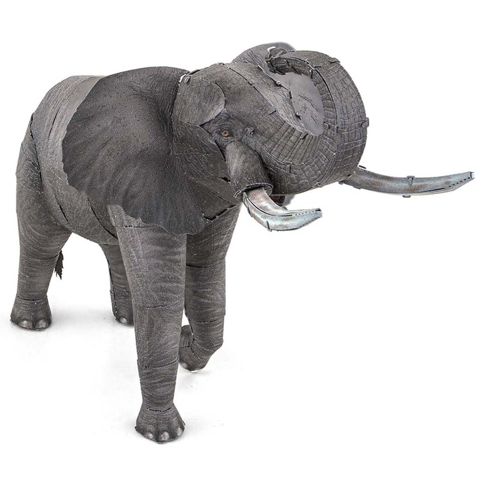 Das Modell African Elephant von Metal Earth besteht aus 3 Metallbögen (11 x 11 cm) und ist aufgebaut 12,5 x 6,6 x 9,4 cm groß. Der Afrikanische Elefant ist das größte Landtier der Erde. Er ist an seinen riesigen Ohren zu erkennen, die an die Form des afrikanischen Kontinents erinnern, sowie an seinen beiden markanten Stoßzähnen, die er zum Graben, zur Nahrungssuche und zur Verteidigung einsetzt. Afrikanische Elefanten spielen eine entscheidende ökologische Rolle, indem sie die Artenvielfalt in Ökosystemen fördern. Gleichzeitig sind sie jedoch erheblich durch Lebensraumverlust und Wilderei wegen ihrer Elfenbeinstoßzähne bedroht.