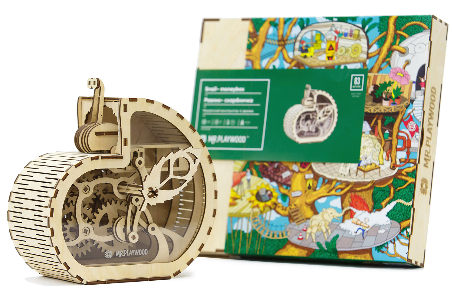 Alle mechanischen 3D-Holzmodelle von Mr. Playwood sind in der Geschichte eines großen Märchens vereint. Deshalb bietet Mr. Playwood nicht nur einfach weitere Holzbausätze, sondern einen Teil einer faszinierenden Geschichte. Alle Teile der mechanischen Modelle sind aus natürlichem Holz und montagefertig. Sie benötigen keinen Kleber oder andere Verbindungselemente. Die hölzernen mechanischen Modelle sind auch in der Größe beeindruckend. Die Bausätze von Mr. Playwood sind in einer Geschenkbox verpackt. Ein helles Cover, bunte Illustrationen und eine Geschichte über den Erfinder selbst sorgen für die passende Stimmung.