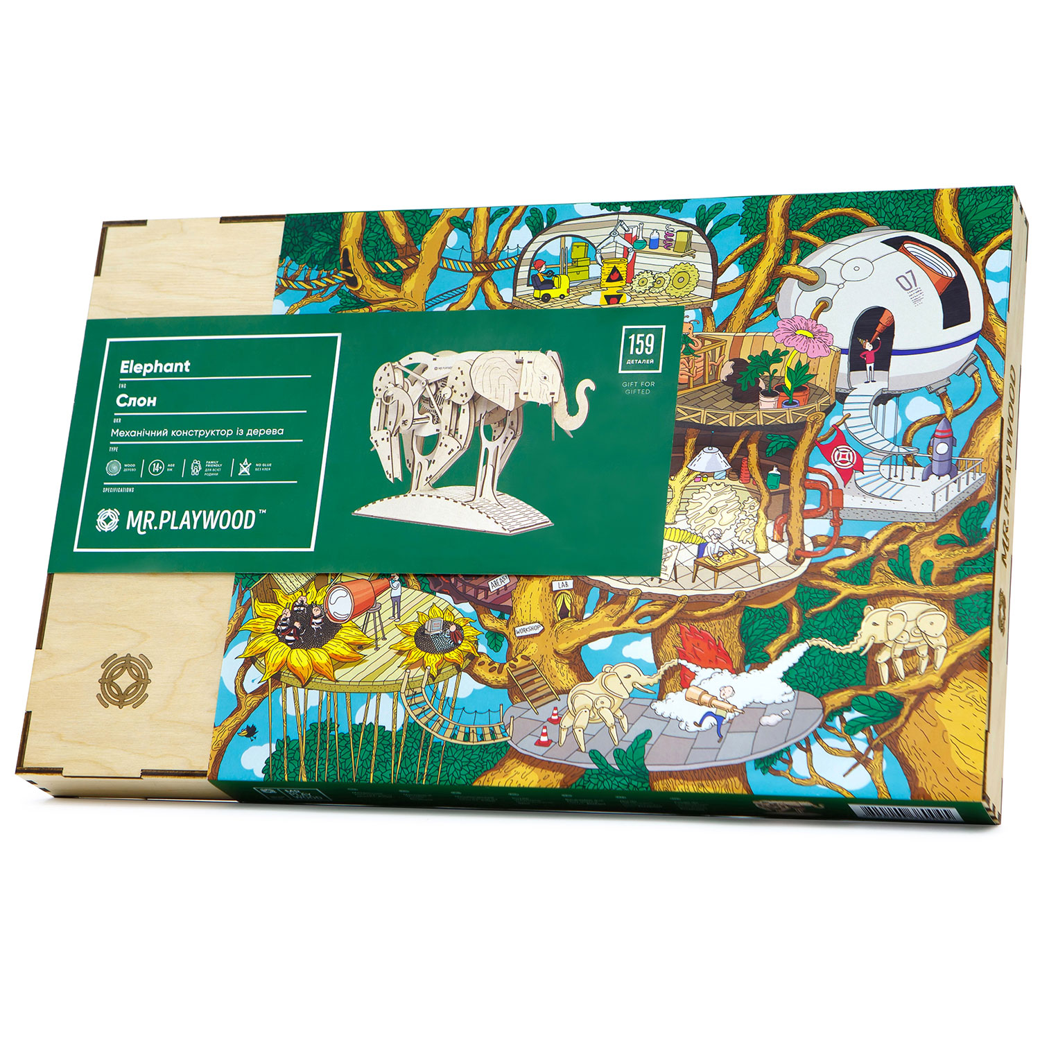 Die Bausätze von Mr. Playwood schaffen Modelle, die im fertigen Zustand zum Leben erwachen. Mr. Playwood versteht dabei die Modelle als Teil einer großen Geschichte. Deshalb bietet Mr. Playwood für viele Modelle nicht nur einfach weitere Holzbausätze, sondern einen Teil einer faszinierenden Geschichte. Alle Teile der mechanischen Modelle sind aus natürlichem Holz und montagefertig. Sie benötigen keinen Kleber oder andere Verbindungselemente. Die Bausätze von Mr. Playwood sind in einer Geschenkbox verpackt.