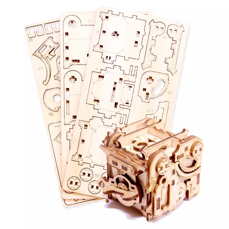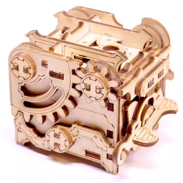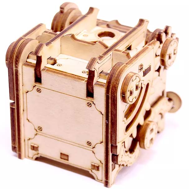 Auf der Außenseite der Minipunk Puzzle Box finden Sie mechanische Zahnräder und Muttern, die dem Ganzen Charakter verleihen!
