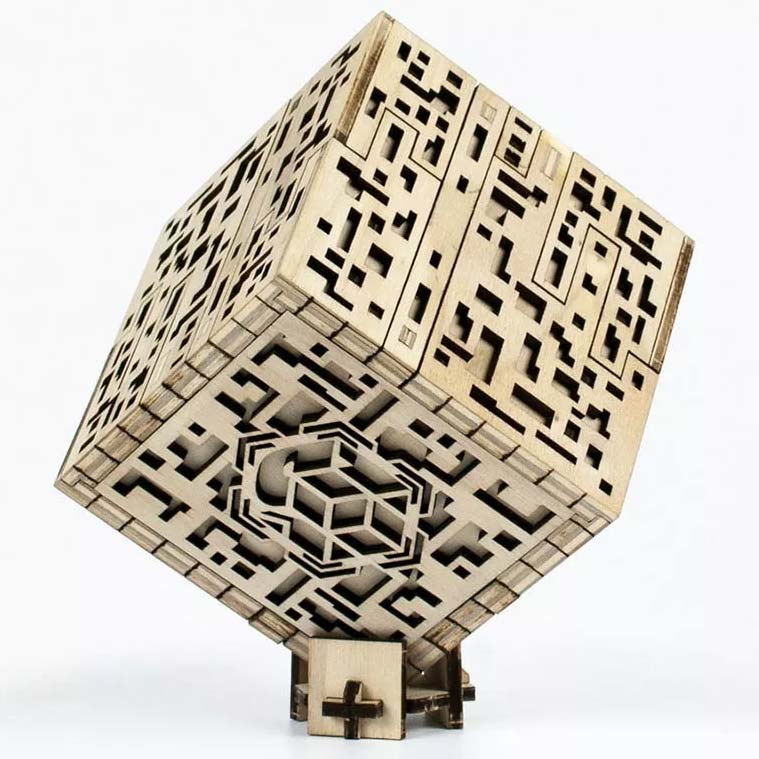 Die Puzzle Box wurde in einer Werkstatt in Südfrankreich in Lodève in Okzitanien entworfen und hergestellt. Dies ist ein ethisches Modell, da das verwendete Pappelholz aus nachhaltig bewirtschafteten Wäldern stammt. Jedes der 144 Teile, aus denen dieser Holzwürfel besteht, wurde lasergeschnitten.