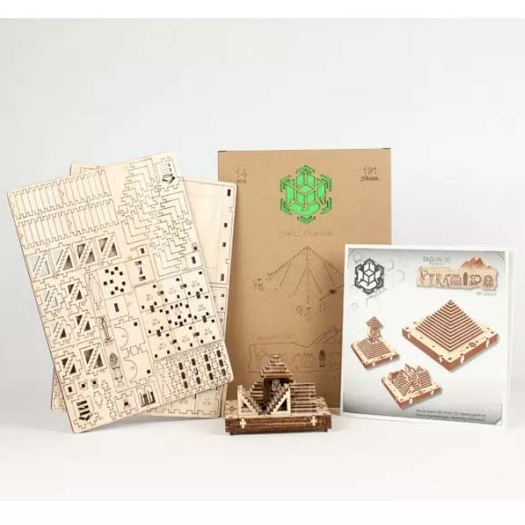 Pyramido ist ein 191-teiliges DIY-Puzzle. Es wird als Bausatz mit 3 Holzböden geliefert, auf denen die Teile zugeschnitten sind. Es liegt an Ihnen, sie zu lösen und zusammenzufügen, um die Box zu erstellen. Diese rätselhafte Kreation von NKD Puzzle ist nicht nur ein Kit zum Zusammenbauen. Es ist auch ein Spiel! Eine Mumie und ein Sarkophag sind enthalten. Einmal zusammengebaut, können Sie die Puzzleteile bewegen, um die Mumie einzusperren! Dieses lustige Spiel ist daher besonders für Kinder geeignet. Der Bausatz wurde aus natürlichem Pappelholz hergestellt. Jedes Stück wurde sorgfältig lasergeschnitten, um ein qualitativ hochwertiges Ergebnis zu gewährleisten.