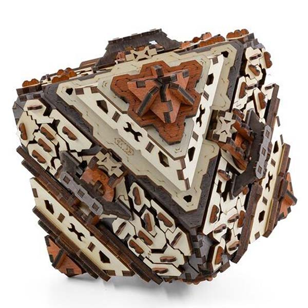 Frucht präziser Ingenieurskunst und sorgfältig durchdachtem Design, vereint Tetra Science-Fiction und Realität. Wie ein aus der Area 51 entkommenes Stück, offenbart Ihnen dieser neu erfundene Tetraeder ein sequentielles und algorithmisches Rätsel in einem lebhaften Cyberpunk-Design. Mit Ausdauer entdecken Sie den "Chamäleonkopf", eine letzte Überraschung, die Ihren Erfolg in diesem rätselhaften Puzzle krönt.