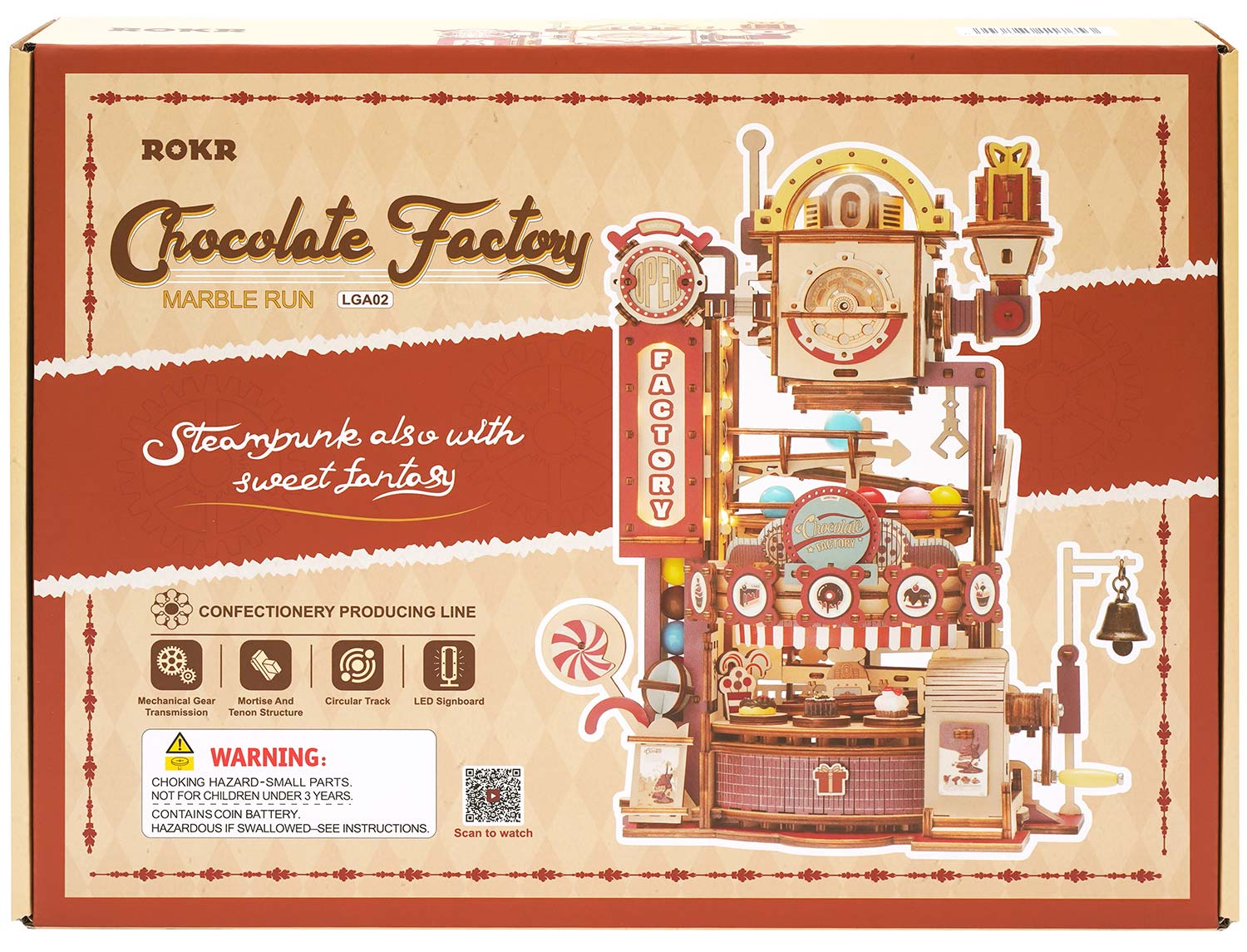 Die Chocolate Factory ist ein neues MOdell aus der Marble Run Serie von Roks. Jeder hat sein Märchenparadies im Herzen. Es könnte eine Bonbonbude im Wald sein, das hohe Schloss von Schneewittchen oder die Schokoladenfabrik von Herrn Wonka. Inspiriert von den Klassikern kombiniert Rokr einen Hardcore-Fun-Trackball mit einer Schokoladenfabrik, um ein lustiges Tisch-Murmelbahn-Spielzeug im Retro-Look mit Süßigkeiten-Motiven zu schaffen. Das herausragendste Merkmal dieses neuen Modells ist die geniale Integration verschiedener Spuren in die Produktionslinie der Fabrikautomatisierung, wobei ein einzigartiger Hebemechanismus verwendet wird, um die Bonbons auf die Weise hin- und herbewegen zu lassen, genau wie eine echte automatisierte Fabrik, die ewig läuft.