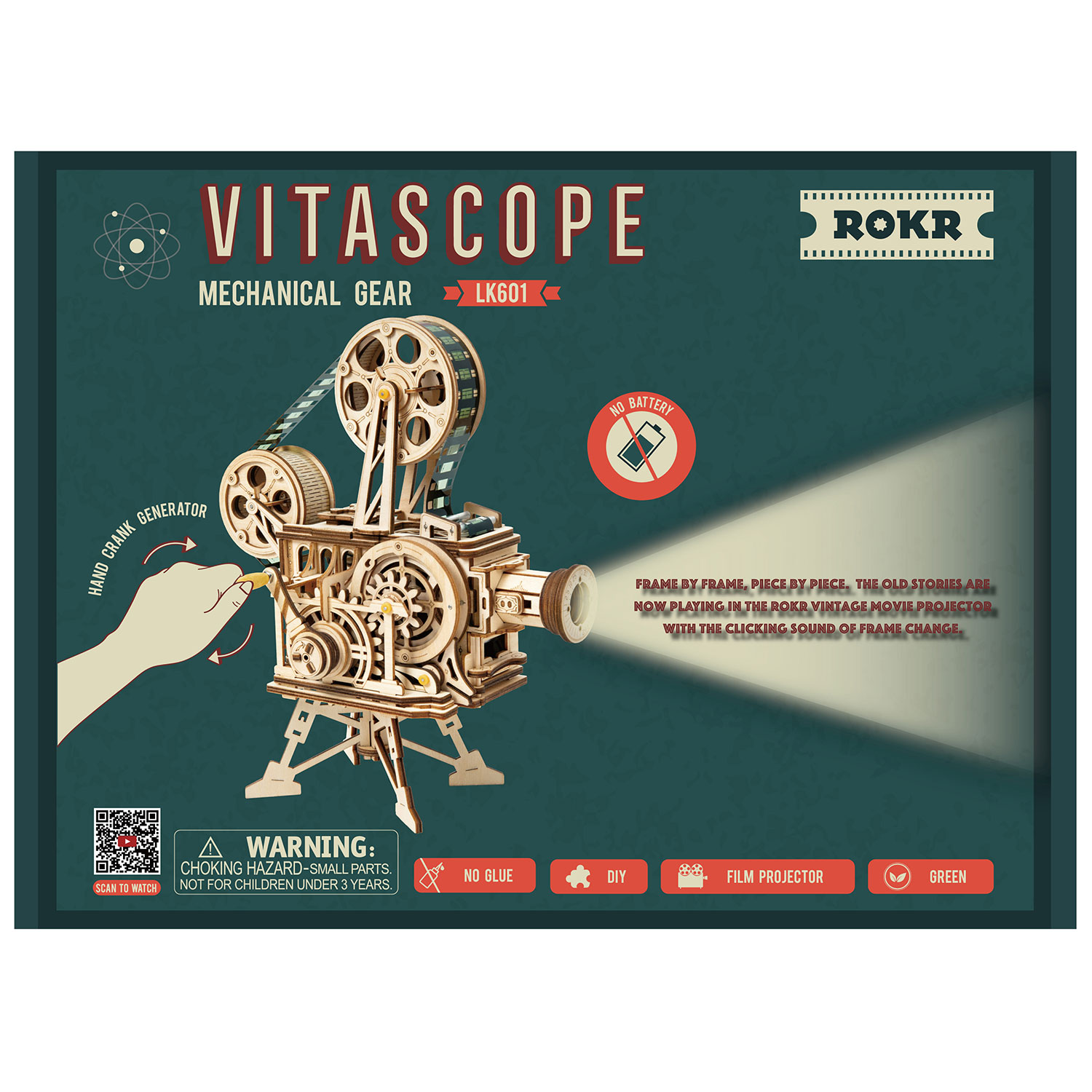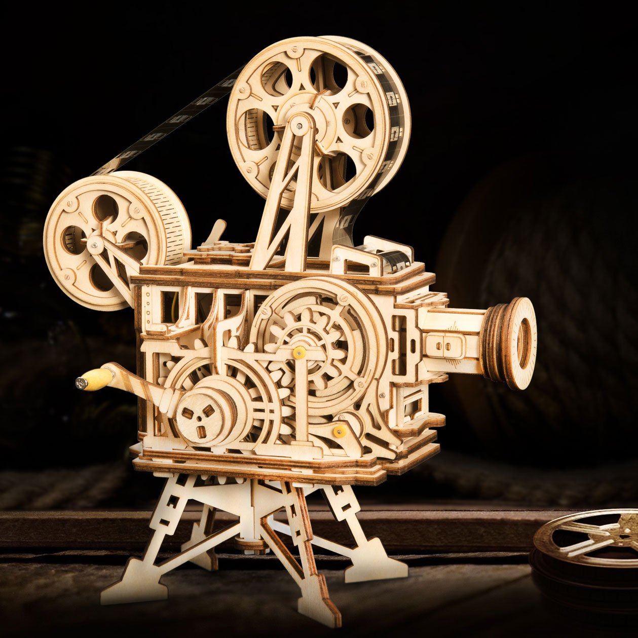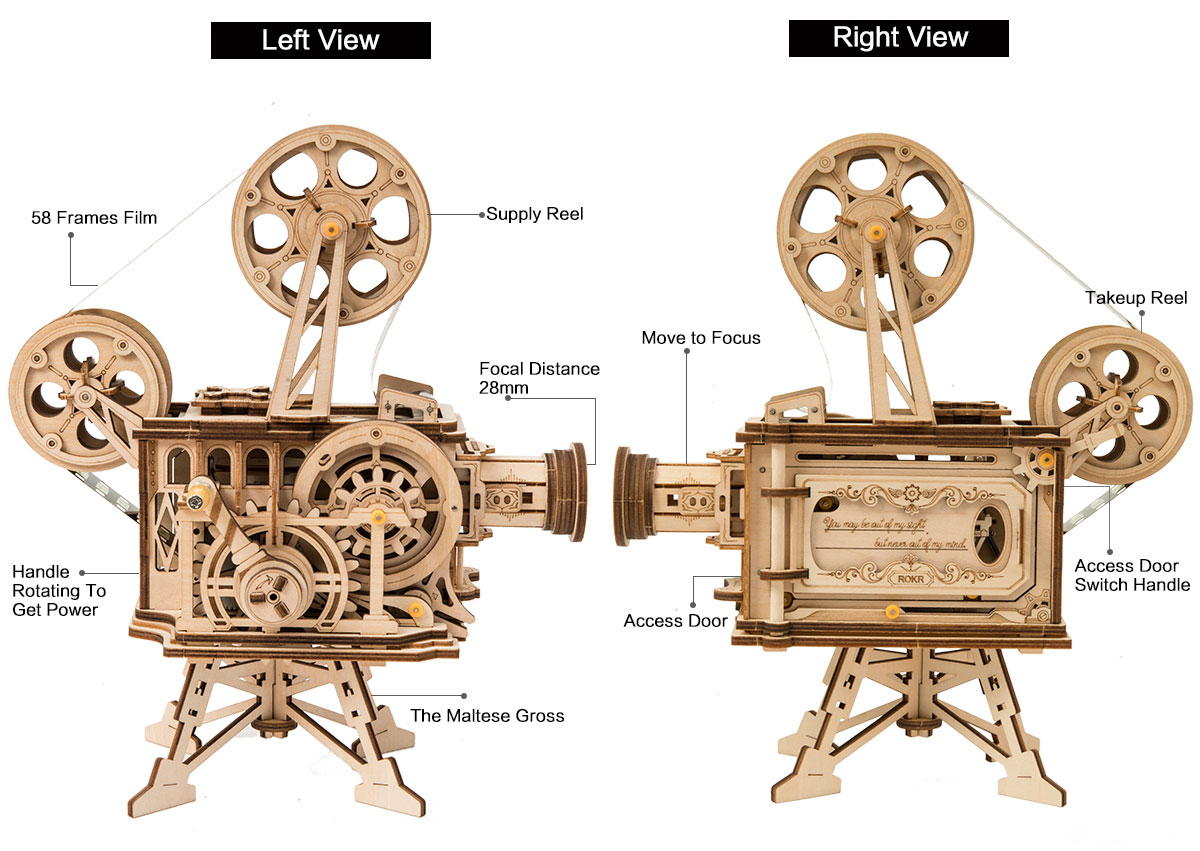 Der Vintage Film Projektor "Vitascope" von Rokr ist ein echtes Meisterwerk. Der Bausatz läßt einen funktionierenden Projektor entstehen, der ganz ohne Batterien einen Film abspielen kann. Durch eine Kurbel wird der Projektor angetrieben, passendes Filmmaterial wird natürlich mitgeliefert.