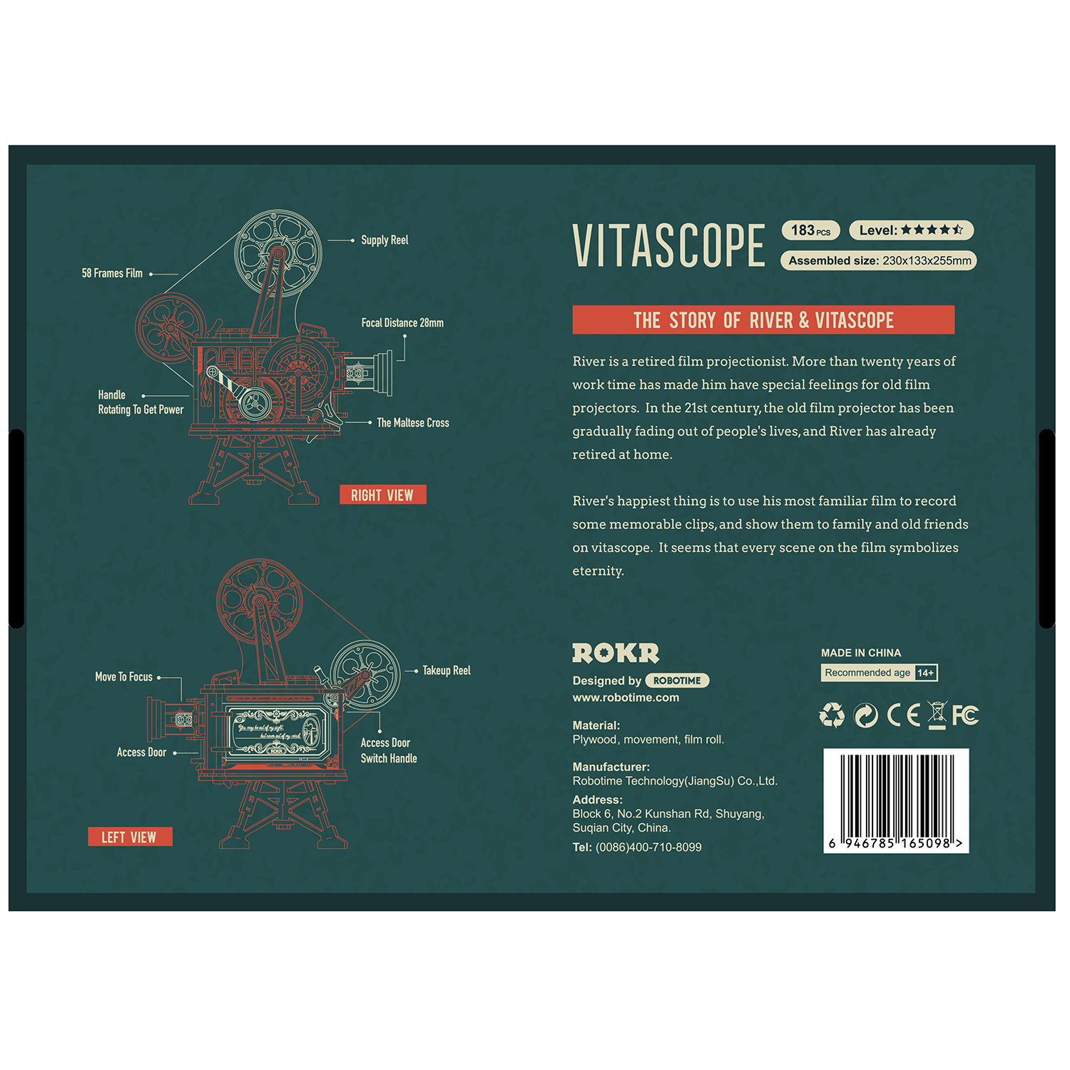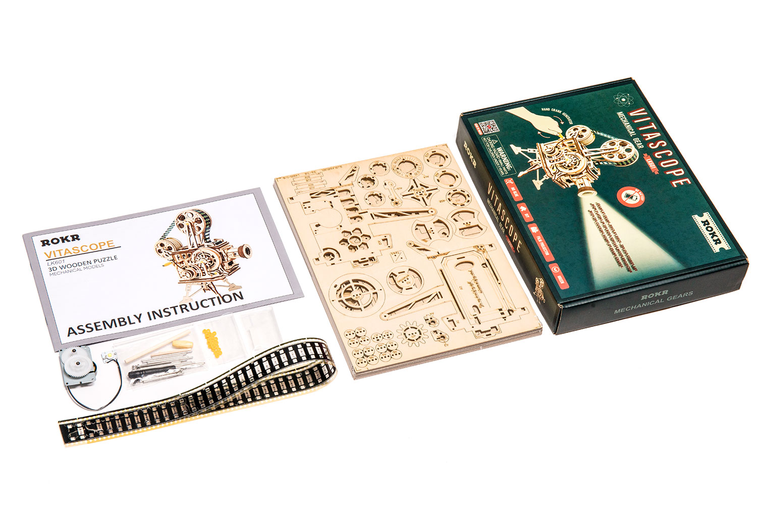 Rokr ist eine Marke des chinesischen Herstellers Robotime. Die mechanischen Holz-Bausätze von Rokr bestehen aber nicht komplett aus Holz, sondern setzen auch wenige Teile aus Metall und Kunststoff ein, um die mechanischen Funktionen robuster und lauffähiger zu gestalten.