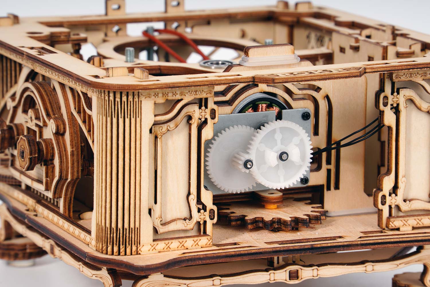 Rokr ist eine Marke des chinesischen Herstellers Robotime. Die mechanischen Holz-Bausätze von Rokr bestehen aber nicht komplett aus Holz, sondern setzen auch wenige Teile aus Metall und Kunststoff ein, um die mechanischen Funktionen robuster und lauffähiger zu gestalten.