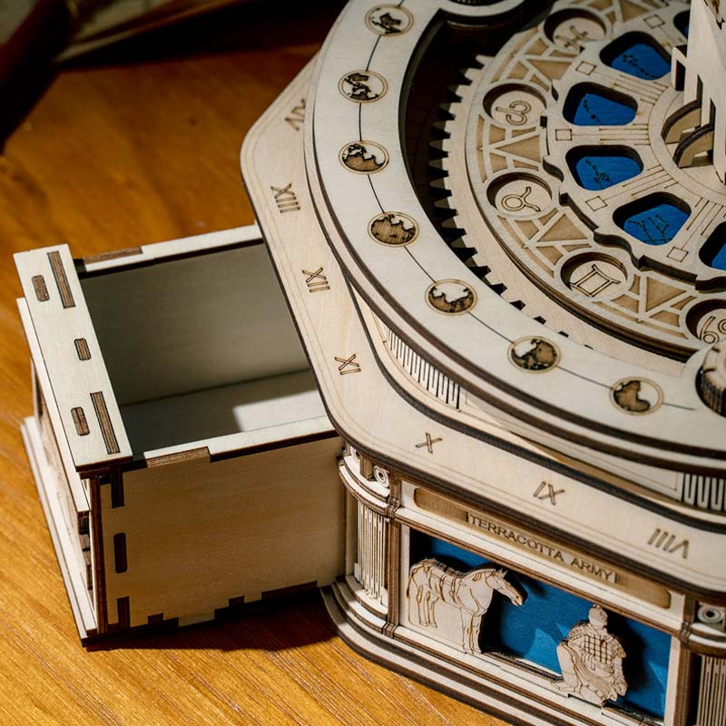 Rokr ist eine Marke des chinesischen Herstellers Robotime. Die mechanischen Holz-Bausätze von Rokr bestehen aber nicht komplett aus Holz, sondern setzen auch wenige Teile aus Metall und Kunststoff ein, um die mechanischen Funktionen robuster und lauffähiger zu gestalten.