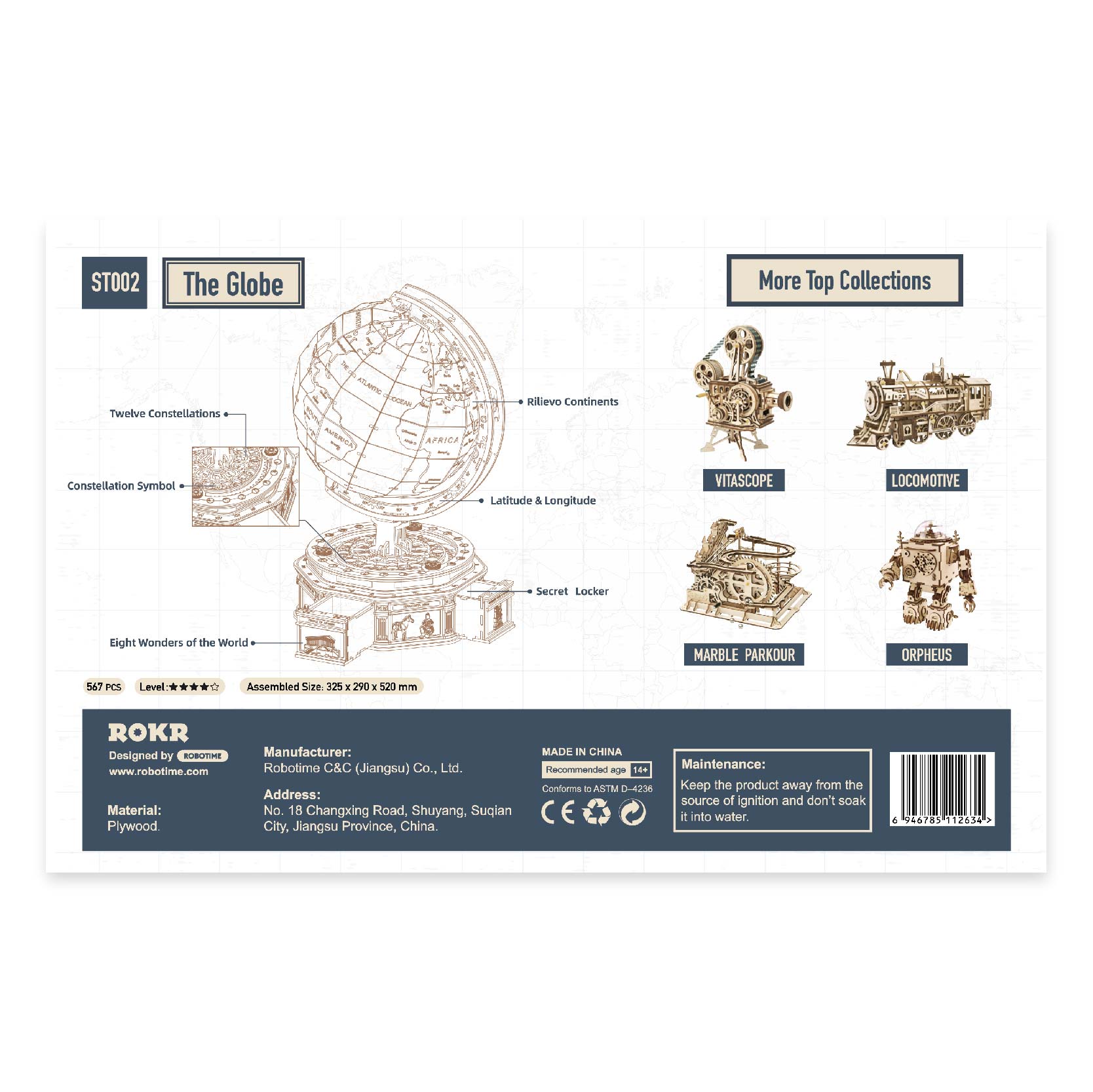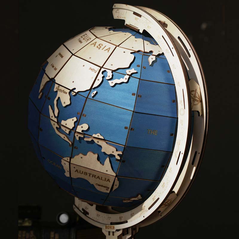 The Globe von Rokr ist ein mechanisches Modell. Der Bausatz besteht aus 567 Teilen.