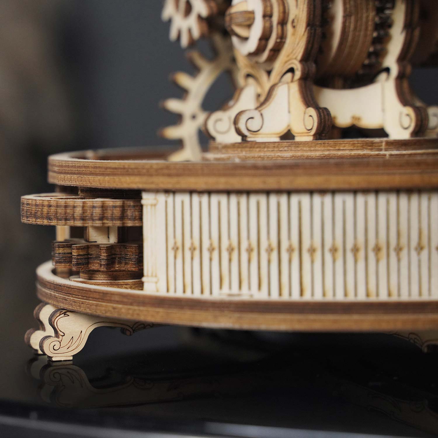 Rokr ist eine Marke des chinesischen Herstellers Robotime. Die mechanischen Holz-Bausätze von Rokr bestehen aber nicht komplett aus Holz, sondern setzen auch wenige Teile aus Metall und Kunststoff ein, um die mechanischen Funktionen robuster und lauffähiger zu gestalten.