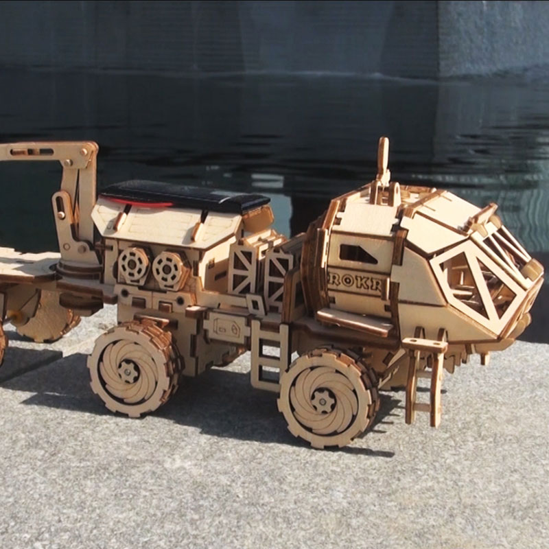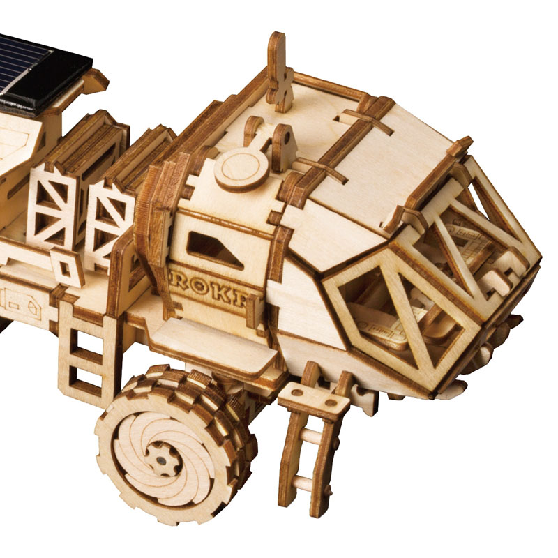 Der Bausatz Navitas Rover aus der Space Hunting Serie von Rokr ist ein solarbetriebenes Modell, das sich mithilfe der Solarenergie von alleine vorwärts bewegt. Keine Batterien sind notwendig, der Zusammenbau erfolgt komplett ohne Klebstoff.