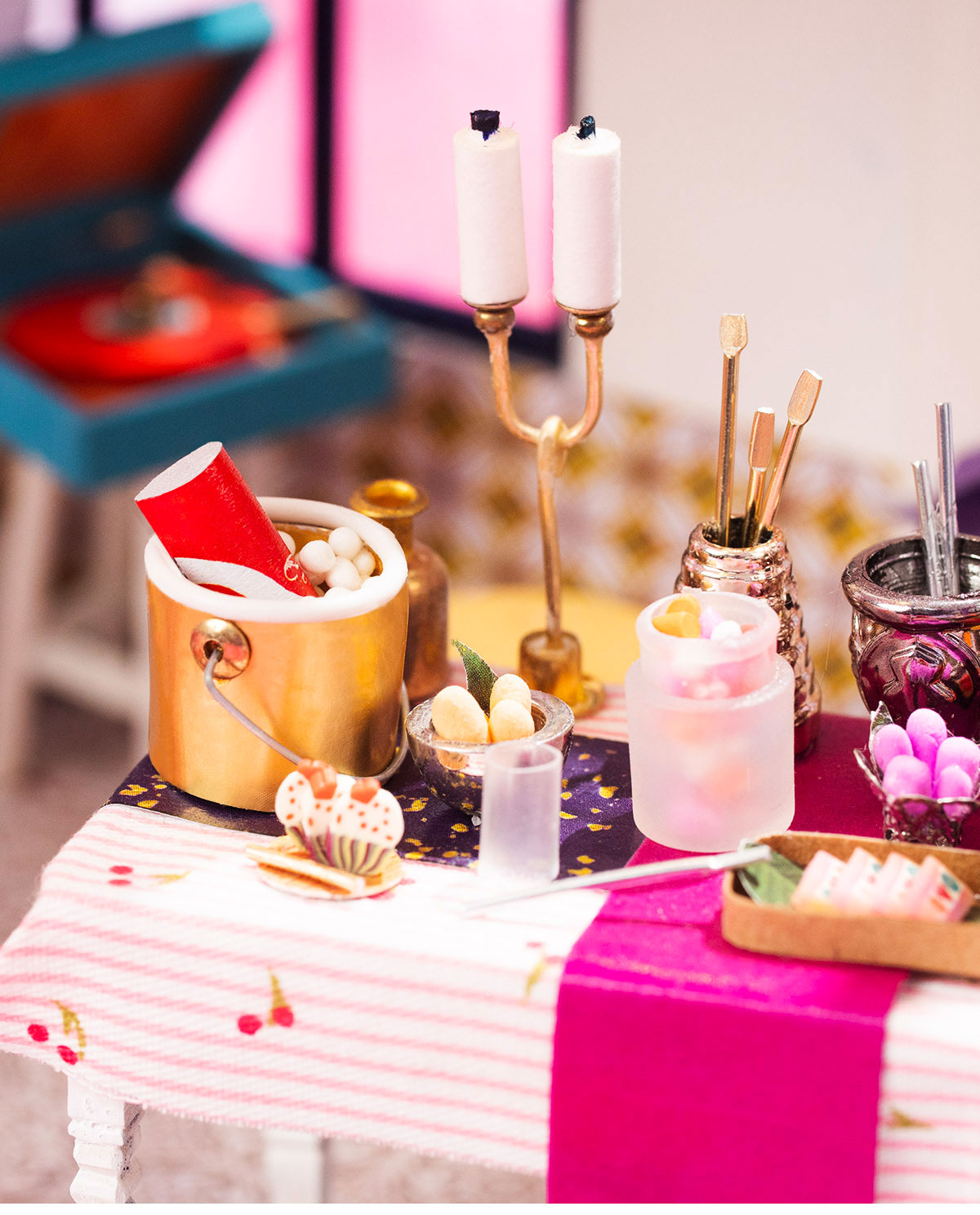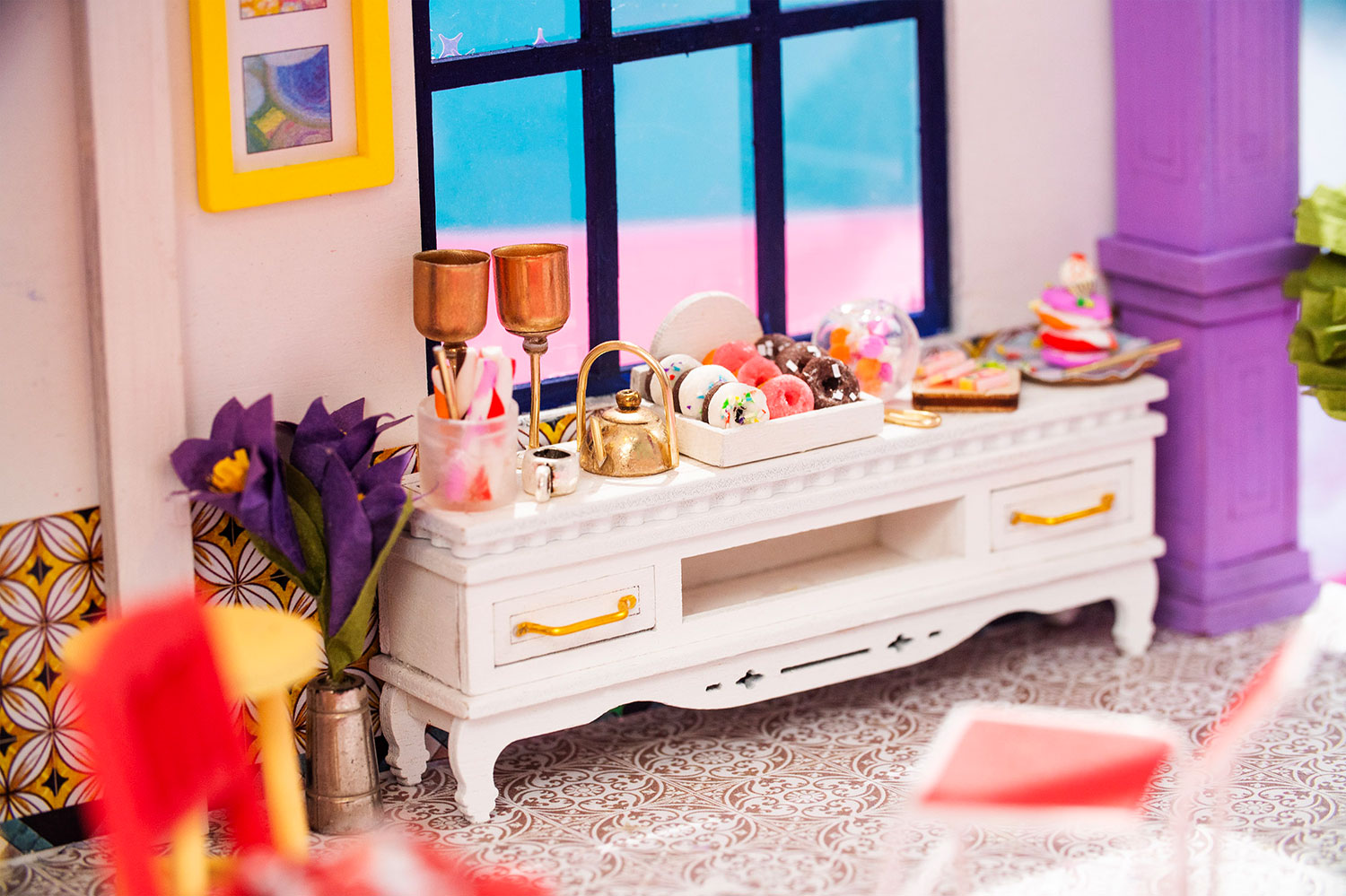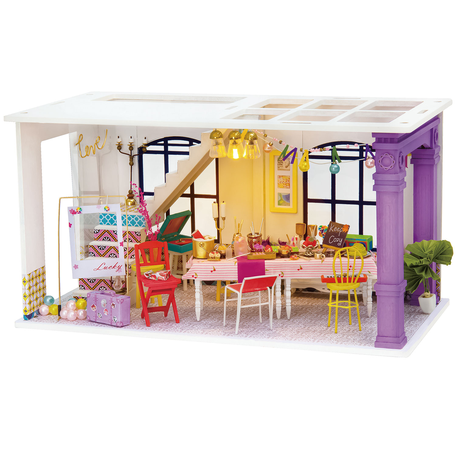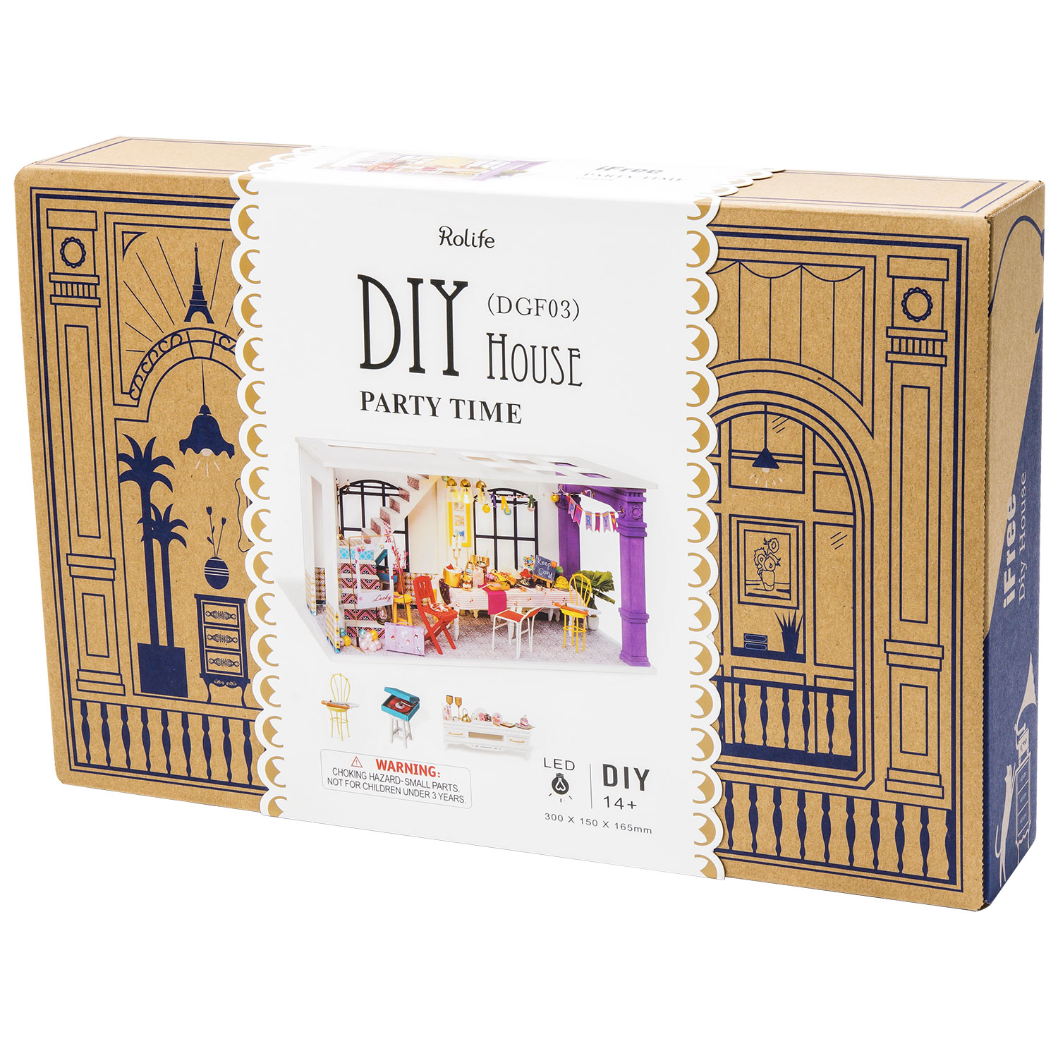 Der Bausatz "Partytime" aus der DIY Miniature House Serie von Rolife. Das Modell ist aufgebaut ca. 30 x 15 x 16,5 cm groß.