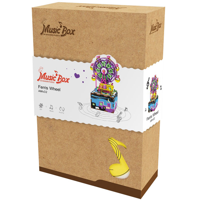 Die Dou It Yourself Music Box "Ferris Wheel" von Rolife ist ein Bausatz für eine funktionsfähige Musikbox. Die Musikbox ist aufgebaut ca. 10 x 7,6 x 16,8 cm groß.