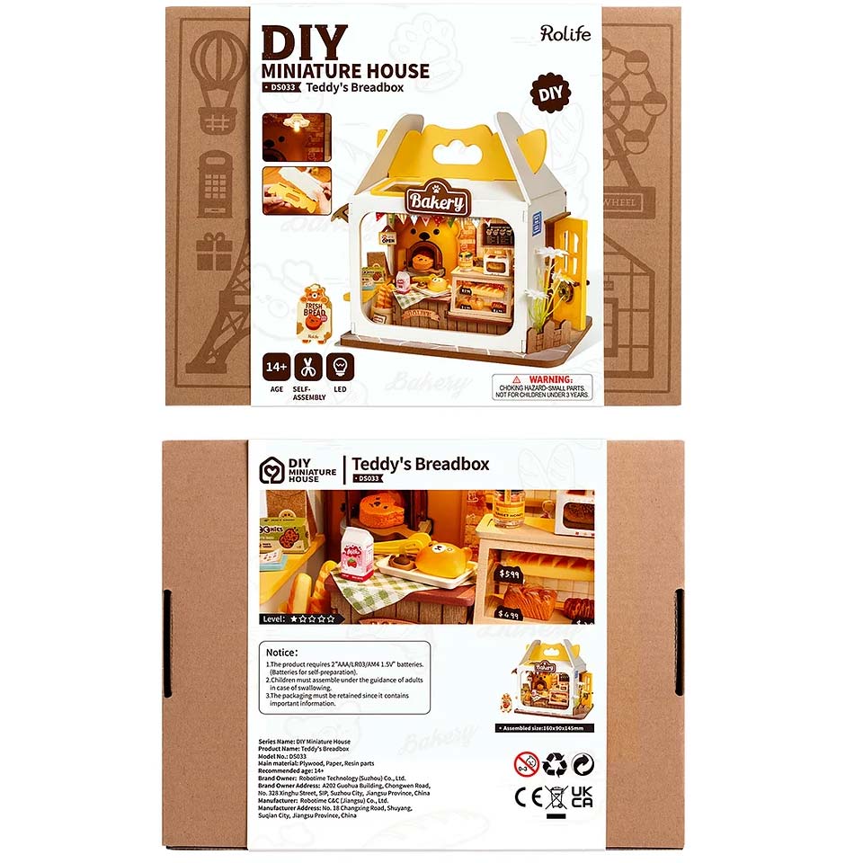 Der Bausatz Teddy's Breadbox ist ein neues, kreativ gestaltetes Haus in Brotkastenform und kleiner Größe. Mit dem Einlegedesign und vielen vorgefertigten Requisiten ist es in 1,5 Stunden schnell fertig. Nach dem Zusammenbau kann es als Dekoration dienen und für Rollenspiele verwendet werden.