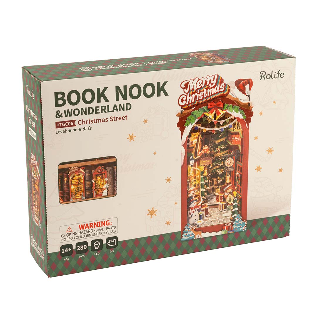 Der Bausatz "Christmas Indoor Scene" aus der Stories in Books-Serie von Rolife. Der Bausatz enthält alles, was Sie zum Bauen dieser weihnachtlichen Szene benötigen. Mit all den Holzteilen und Werkzeugen werden Sie nach und nach die gesamte Szene wie Geschäfte, Straße, Bäume, Uhr usw. zusammenbauen. Diese Bücherecke wird auch eine einzigartige und exquisite Dekoration für Ihr Bücherregal und Ihren Schreibtisch sein. Im Dunkeln können Sie die Szenereie mit den mitgelieferten Lichtern in Szene setzen.
