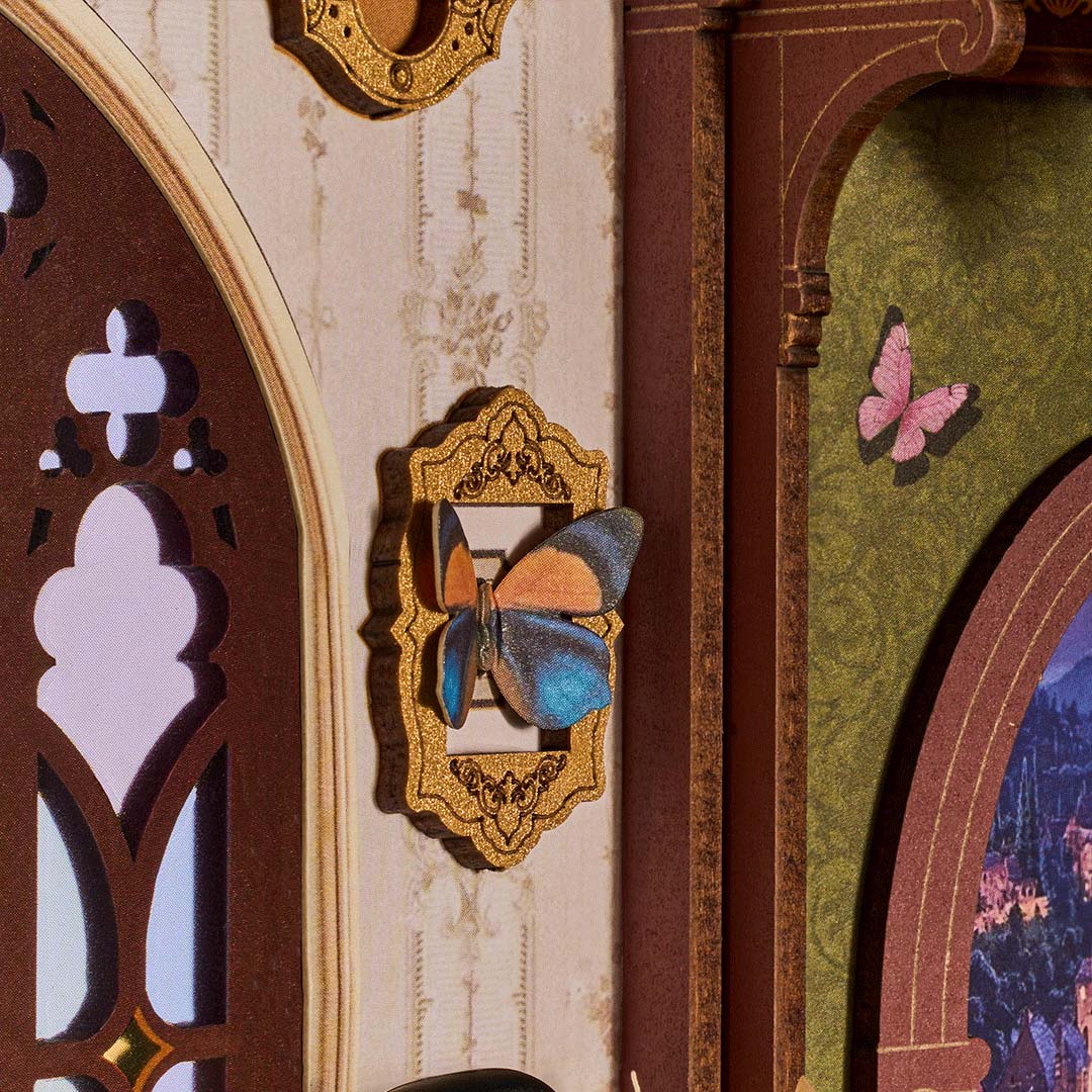 Der Bausatz "Magic Fantasy Corner" aus der Stories in Books-Serie von Rolife. Der Bausatz enthält alles, was Sie zum Bauen dieser magischen Szene benötigen. Mit all den Holzteilen und Werkzeugen werden Sie nach und nach die gesamte Szene zusammenbauen. Diese Bücherecke wird auch eine einzigartige und exquisite Dekoration für Ihr Bücherregal und Ihren Schreibtisch sein. Im Dunkeln können Sie die Szenereie mit den mitgelieferten Lichtern in Szene setzen.