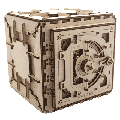 Der Bausatz Buch der Gehemnisse von Ugears: Schließen Sie geheime Notizen, wertvolle Schätze oder andere persönliche Dinge mit dem Buch der Geheimnisse einfach weg und halten Sie sie von neugierigen Blicken fern. Dieses wunderbare 3D-Holzpuzzle ist eine Steampunk-Schatulle in Form eines Buches mit Zahlenkombinationsschloss, einem Geheimfach, einem Öffnungsprozess in mehreren Schritten und einer fantastische Mechanik. Ihr Buch der Geheimnisse öffnen Sie, indem Sie eine dreistellige Zahlenkombination in den Buchrücken eingeben, damit der Geheimschlüssel entsichert wird. Stecken Sie den Schlüssel in den speziellen Schlitz und drehen Sie ihn gegen den Uhrzeigersinn, damit der Öffnungsmechanismus aktiviert wird. Dann drehen Sie die Zahnräder ebenfalls gegen den Uhrzeigersinn und öffnen schließlich das Buch. Mehrere Fenster auf der Schatulle zeigen Ihnen, ob Sie die einzelnen Schritte korrekt ausgeführt haben. Diese mechanische 3D-Geheimschatulle mit seiner komplexen Öffnungsabfolge steckt voller Mysterien und ist sowohl eine lustige Art, Dinge aufzubewahren, als auch ein lustiges Spiel, bei dem Sie Freunde und Verwandte herausfordern können, die Rätsel des Buchs der Geheimnisse zu lösen. Zum ersten Mal in der Geschichte von Ugears haben wir zwei Farben von Sperrholz (dunkel und hell) verwendet, um dieses Modell für Sie noch spezieller zu machen.Praktisch seit ihrer Erfindung werden Bücher verwendet, um Dinge darin zu verstecken, sowohl in der Realität als auch in der Fiktion. Wohnungsbesitzer können Wertsachen vor Dieben verstecken, indem sie ein Buch aushöhlen und es anschließend zusammen mit anderen Bänden zurück ins Regal stellen. Die Wohnungsbesitzer werden das geheime Buch schnell wiederfinden, für den Einbrecher dagegen ist es praktisch unmöglich. In dem Film Matrix versteckt Neo Disketten und Bargeld in einem Buch. Und wer erinnert sich nicht an jenen Gefängnisausbruch in Die Verurteilten, der mithilfe eines Geologenhammers ausgeführt wurde, der in einer Bibel versteckt war, die dafür ab dem Buch Exodus ausgehöhlt worden war. Wir alle lieben Puzzles und Rätsel, und dieses Buch der Geheimnisse von Ugears ist genau das: ein großes Rätsel mit einer Reihe von Puzzles, das gelöst werden muss, um das Geheimfach zu öffnen und zu sehen, was sich darin befindet!Sie können an Ihrem Buch der Geheimnisse jede beliebige dreistellige Zahlenkombination festlegen, indem Sie die Stiftblock im Innern des Geheimfachs herausnehmen. Drehen Sie die Scheiben auf die gewünschte Kombination und setzen Sie die Stiftblock wieder ein. Der Entsicherungsmechanismus des Schlüssels funktioniert jetzt mit der von Ihnen festgelegten Zahlenkombination. Wenn Sie den Hebel an der Unterseite des Buchrückens betätigen, fällt der Schlüssel aus seinem Schlitz an der Oberseite des Buchrückens. Der Hebel wirft den Schlüssel nicht aus, wenn die drei Walzen mit einer anderen Ziffernfolge konfiguriert werden. Sie können die dreistellige Zahlenkombination jederzeit ändern. Dazu folgen Sie denselben Schritten - das 3D-Holzkästchen öffnen, den Stiftblock herausnehmen, die Kombination ändern, den Stiftblock wieder einsetzen; danach ist der Auswerfmechanismus des Schlüssels auf die neue Zahlenkombination konfiguriert. UGEARS steht für 3D-Holzfunktionsbausätze aus europäischer Fertigung:- Natürliche Materialien - alle 3D-Bausätze werden aus nachhaltig angebautem Holz gefertigt- Kein Klebstoff erforderlich- Mechanische Funktionen - alle Modelle erzeugen Bewegungen- Einfacher Zusammenbau - alle Bauteile sind bereits lasergeschnitten und montagefertig- Made in Europe Die lasergeschnittenen Bauteile werden ganz ohne Klebstoff zusammengefügt. Als Ergebnis entstehen beeindruckende 3D-Modelle mit Selbstantrieb oder besonderen Funktionen. Die Modelle sind für Bastler ab 14 Jahre gedacht - die Funktionsmodelle sind kein Kinderspielzeug. Die hohe Qualität und Passgenauigkeit aller Bauteile wird durch die eingesetzte Lasertechnologie, viel technisches Know-how und eine kompromisslose Qualitätskontrolle von Ugears sichergestellt. Das eingesetzte Holz stammt ausschließlich aus nachhaltigen Quellen.