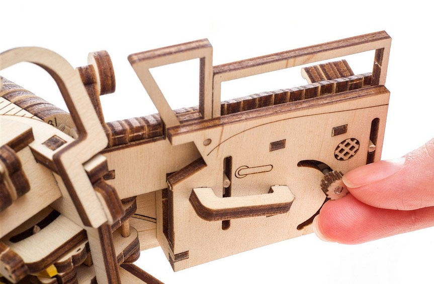 Die lasergeschnittenen Bauteile werden ganz ohne Klebstoff zusammengefügt. Als Ergebnis entstehen beeindruckende 3D-Modelle mit Selbstantrieb oder besonderen Funktionen. Die Modelle sind für Bastler ab 14 Jahre gedacht - die Funktionsmodelle sind kein Kinderspielzeug.